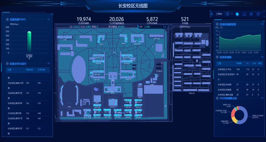 学校根据智慧校园顶层设计,按照“11N.SF”总体架构和“需求驱动、应用为王”的建设思路,坚持数据端和服务端“两端融合”的推进策略以及“谁管理、谁建设”的协同机制,积极推进智慧校园建设,形成了高速稳定全覆盖的校园基础网络、“业务与承载分离”的云基础设施、数据与服务汇聚融合的公共基础平台、虚实融合的数字教学支撑环境、数字赋能的教育大数据应用体系以及及时、稳定、安全的运维保障体系,实现了数据通、业务通、服务通,为学校办学提供了稳定安全可靠的数字化支撑环境,被评为陕西省首批“智慧校园示范校”。