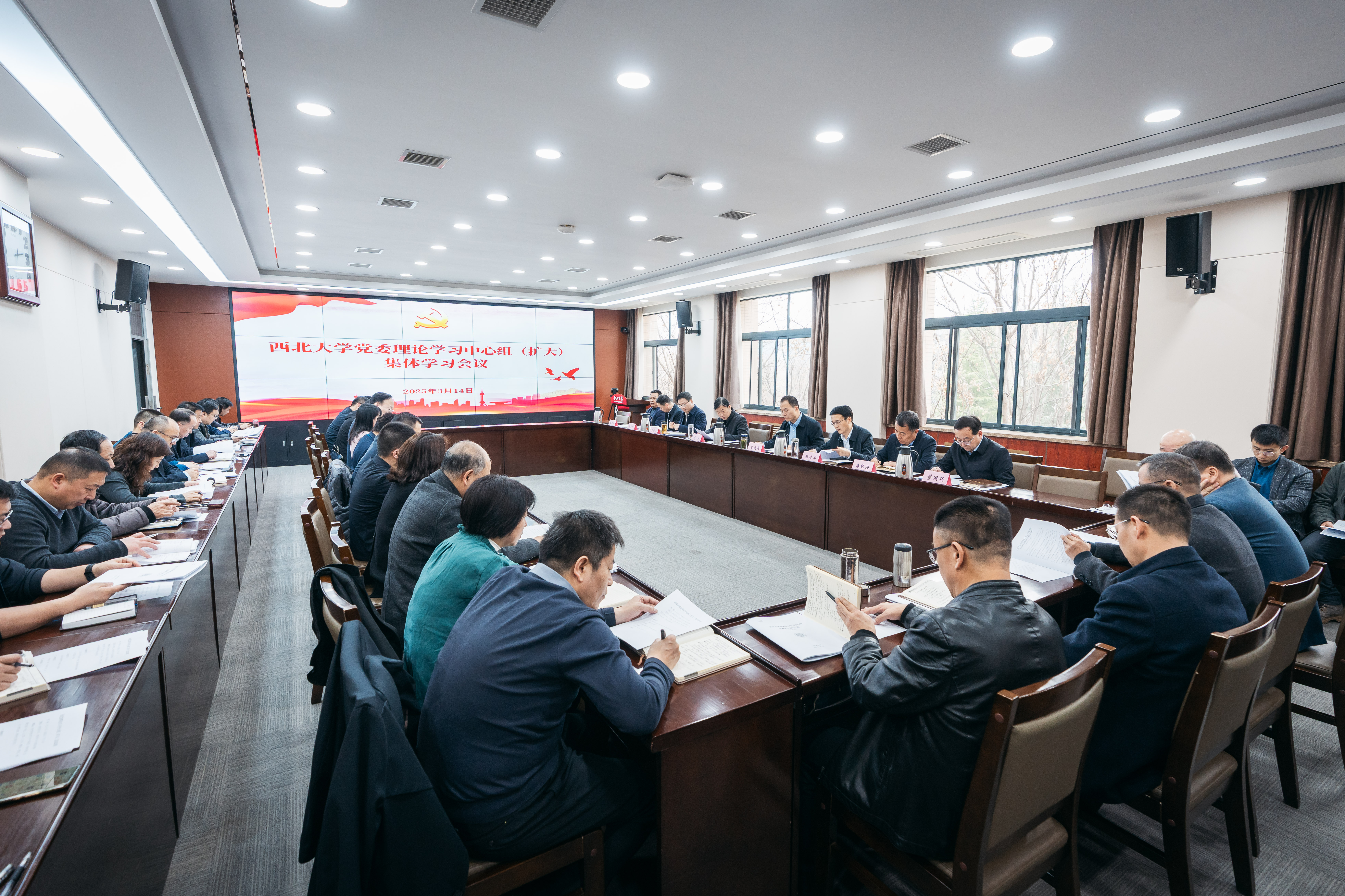 3月14日下午,校党委理论学习中心组在长安校区召开扩大会议,专题学习2025年全国“两会”精神。校党委理论学习中心组成员、校内各党委(直属党支部)书记和相关处室负责人参加了会议。会议由校党委书记蒋林主持。