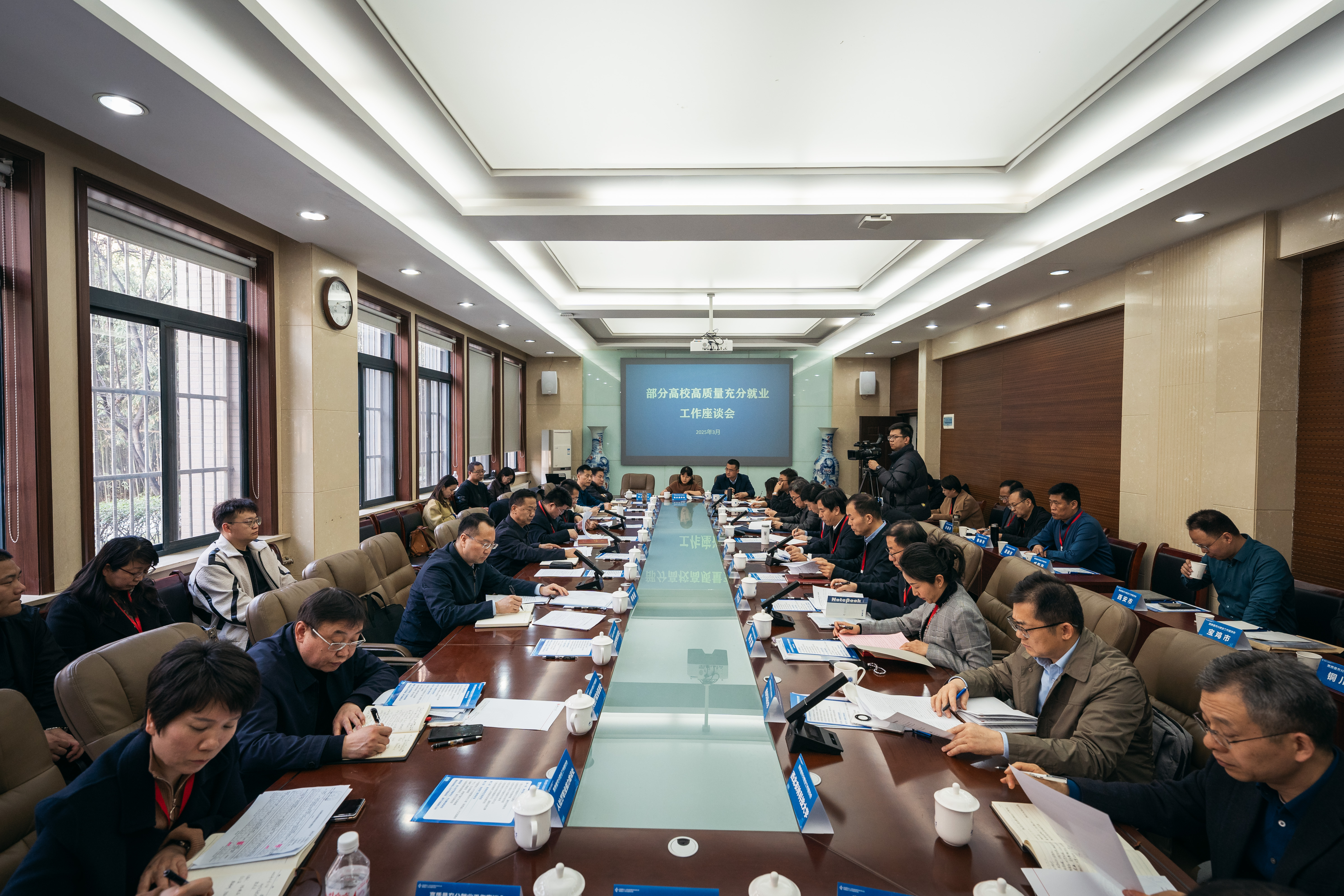 启动仪式结束后,与会嘉宾参加了“部分高校高质量充分就业工作座谈会”。会议由陈晓东主持。会上,西安交通大学等高校围绕“高质量充分就业”主题,分享了各自在促就业方面的主要做法和成效,并提出了存在问题、困难及对策建议。蔡钊利在讲话中简要分析当前就业形势,强调此次招聘会为企业和求职者搭建了高效对接平台,是贯彻落实党中央、国务院决策部署的具体行动,也是人社部门全力稳就业保民生的务实举措。他强调要全面贯彻落实中省有关高校毕业生高质量充分就业的部署安排,强化联动协同,聚集资源,群策群力,拧成“一股绳”,打好“组合拳”,坚决打赢“稳就业促增收”硬仗,以我省高校毕业生促就业的生动实践为高质量充分就业的“大写意”贡献各自力量。(图/ 裴夏野 刘瑞乐 倪鈜星)