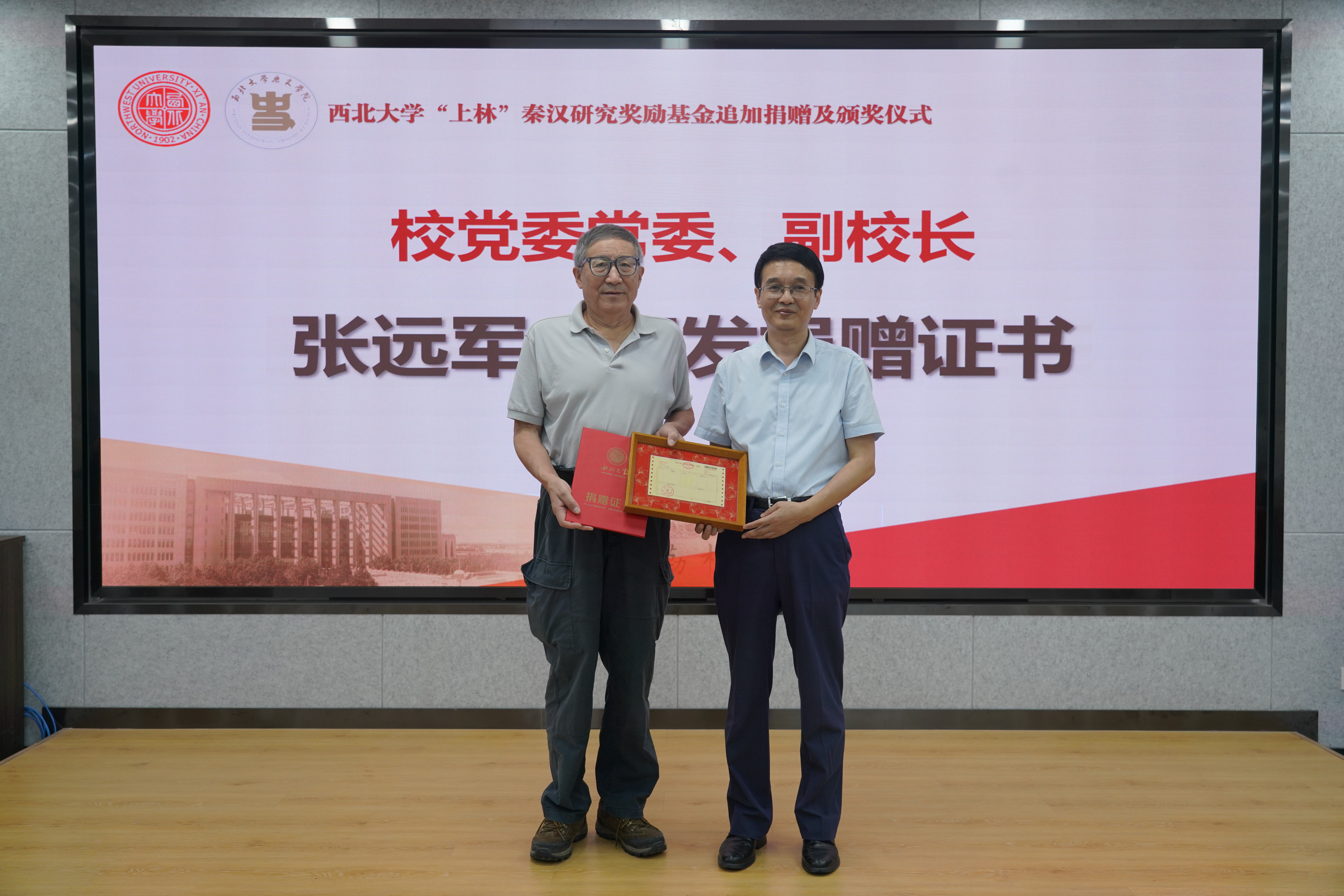 “上林”秦汉研究奖励基金是2011年由王子今教授个人捐资12万元设立,用以奖励在秦汉史学研究(包括秦汉史、秦汉考古、秦汉历史地理、秦汉文学)等方向的学生学术研究成果。十几年间,他不断加大支持力度,分别于2018年、2020年、2022年追加12万元、20万元和40万元,使基金运行效用持续凸显。今年七月,王子今教授再度追加捐赠16万元。至此,个人捐赠基金总额已逾百万元。每一笔捐赠,都体现着王子今教授对史学事业的执着热爱,凝聚着一位杰出校友对母校的深情厚谊,也承载着一位前辈大家对青年学子的殷切期盼。