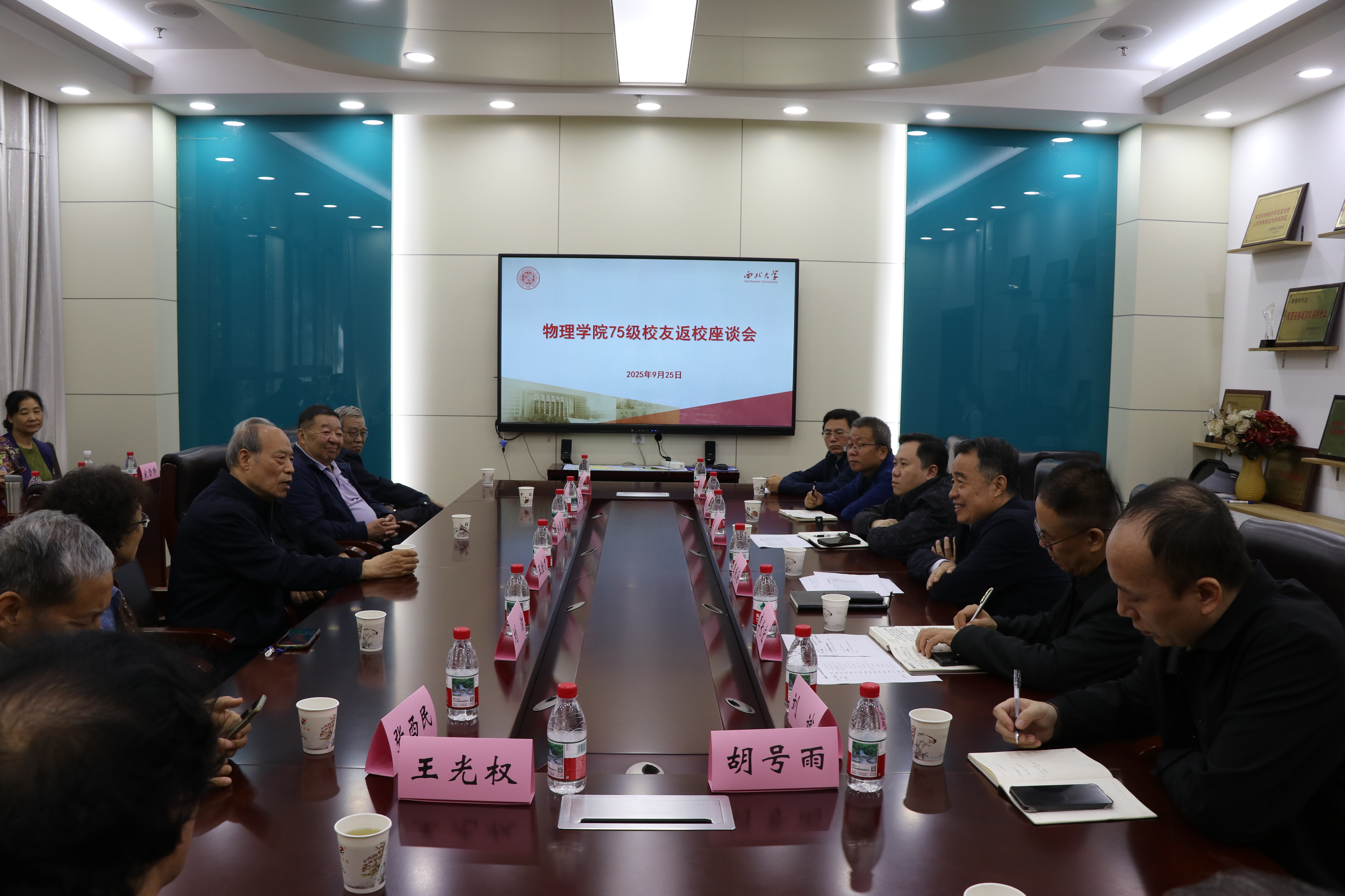 9月25日,太阳集团城物理学院1975级半导体专业校友在入校50周年之际重返母校,追忆青春岁月,共叙师生情谊。校党委常委、副校长李振海,时任班主任、西安美术学院原党委书记王栓才,国内处、物理学院负责人参加座谈会。
