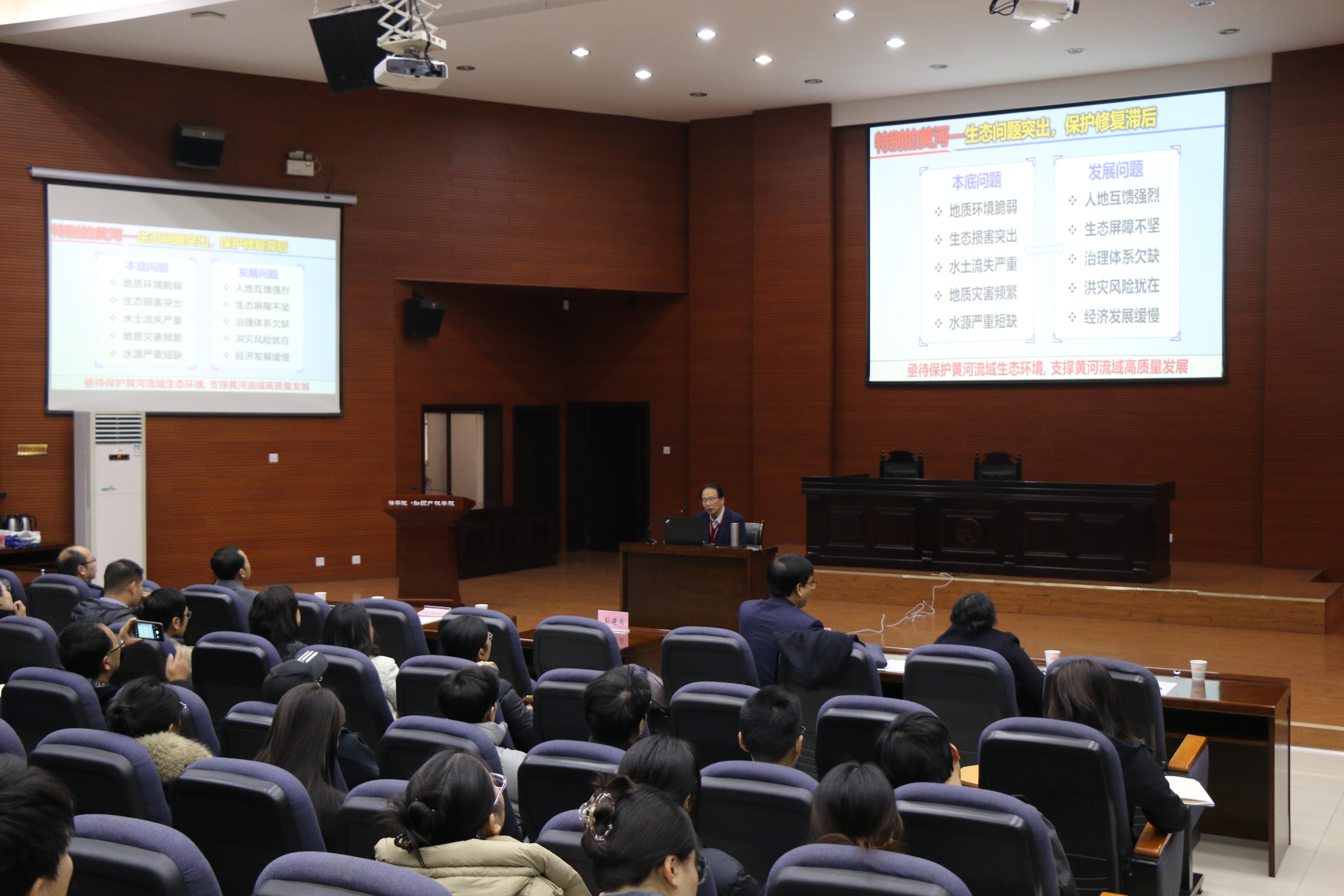 11月20日,中国科学院院士彭建兵做客太阳集团城“杨钟健学术讲座”,为师生们作了题为“对话黄河:地质-水文-生态-灾害-人地-文化六系统”的报告。校党委副书记、纪委书记、省纪委监委驻校纪检监察组长肖道远代表学校致欢迎辞。学校相关单位师生代表参加了报告会。报告会由城市与环境学院院长宋进喜主持。