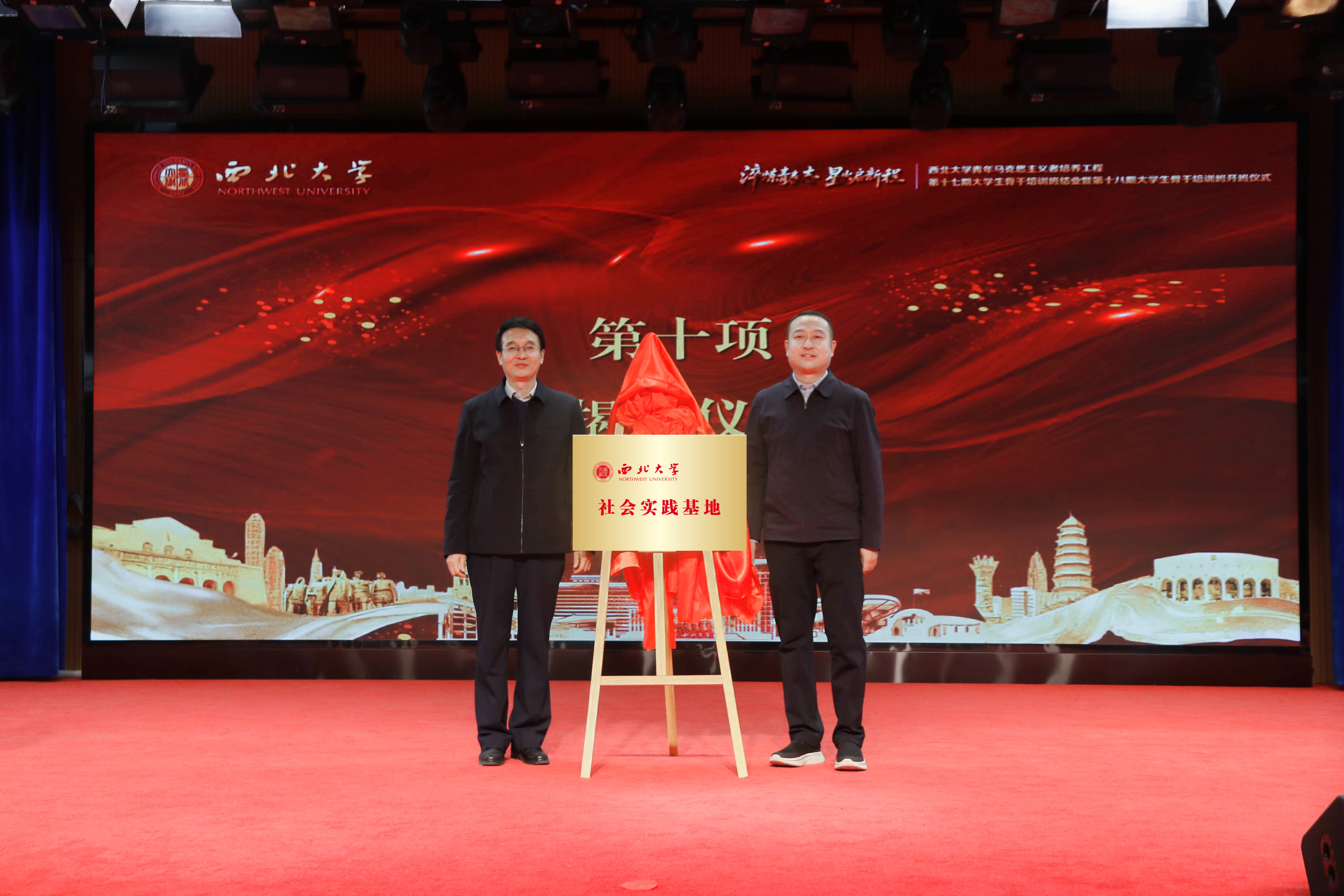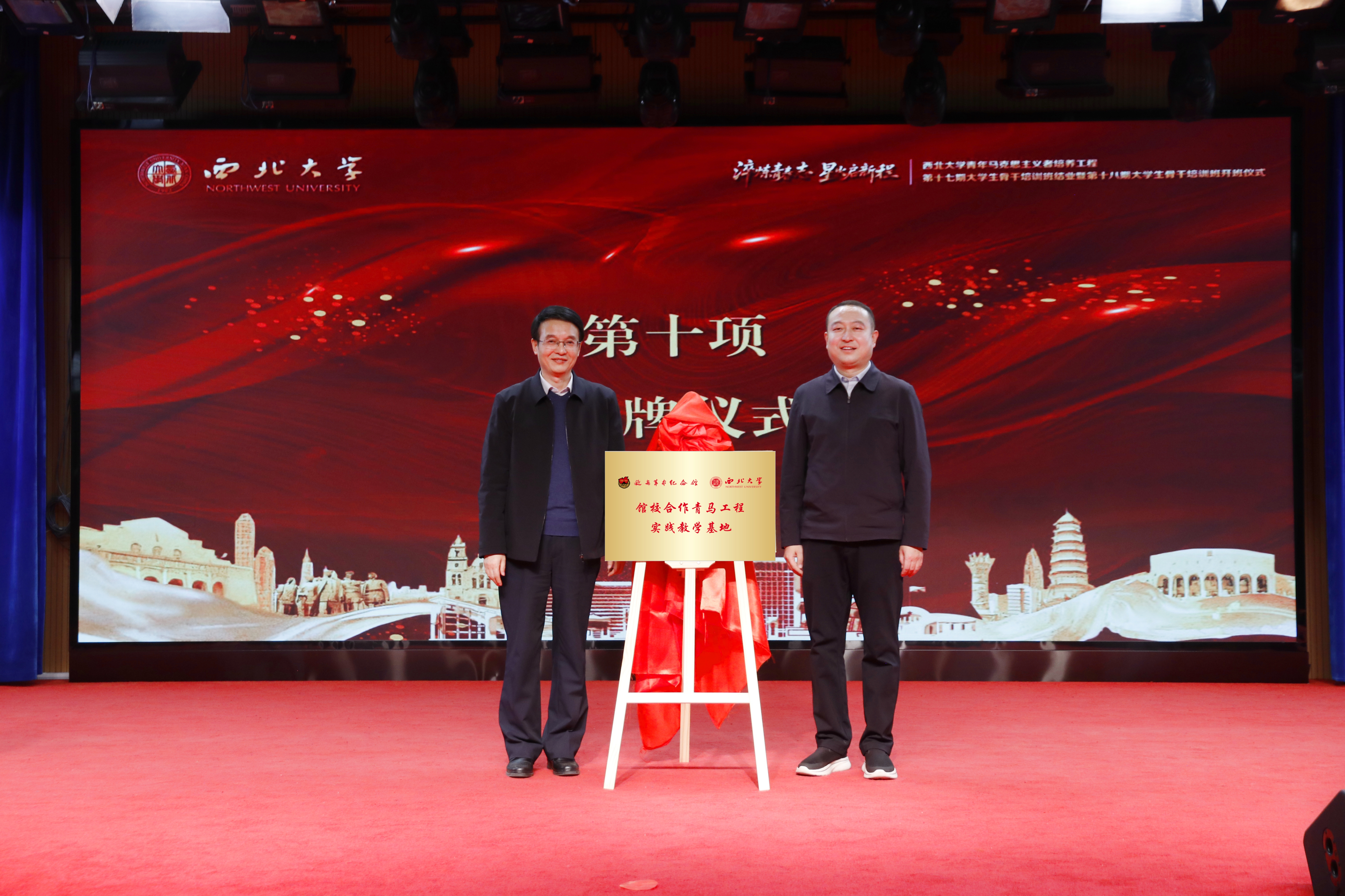 仪式上,张远军和延安纪念馆党委委员、副馆长李晓剑共同为“馆校合作青马工程实践教学基地”和“古天乐代言太阳集团城网址社会实践基地”揭牌。