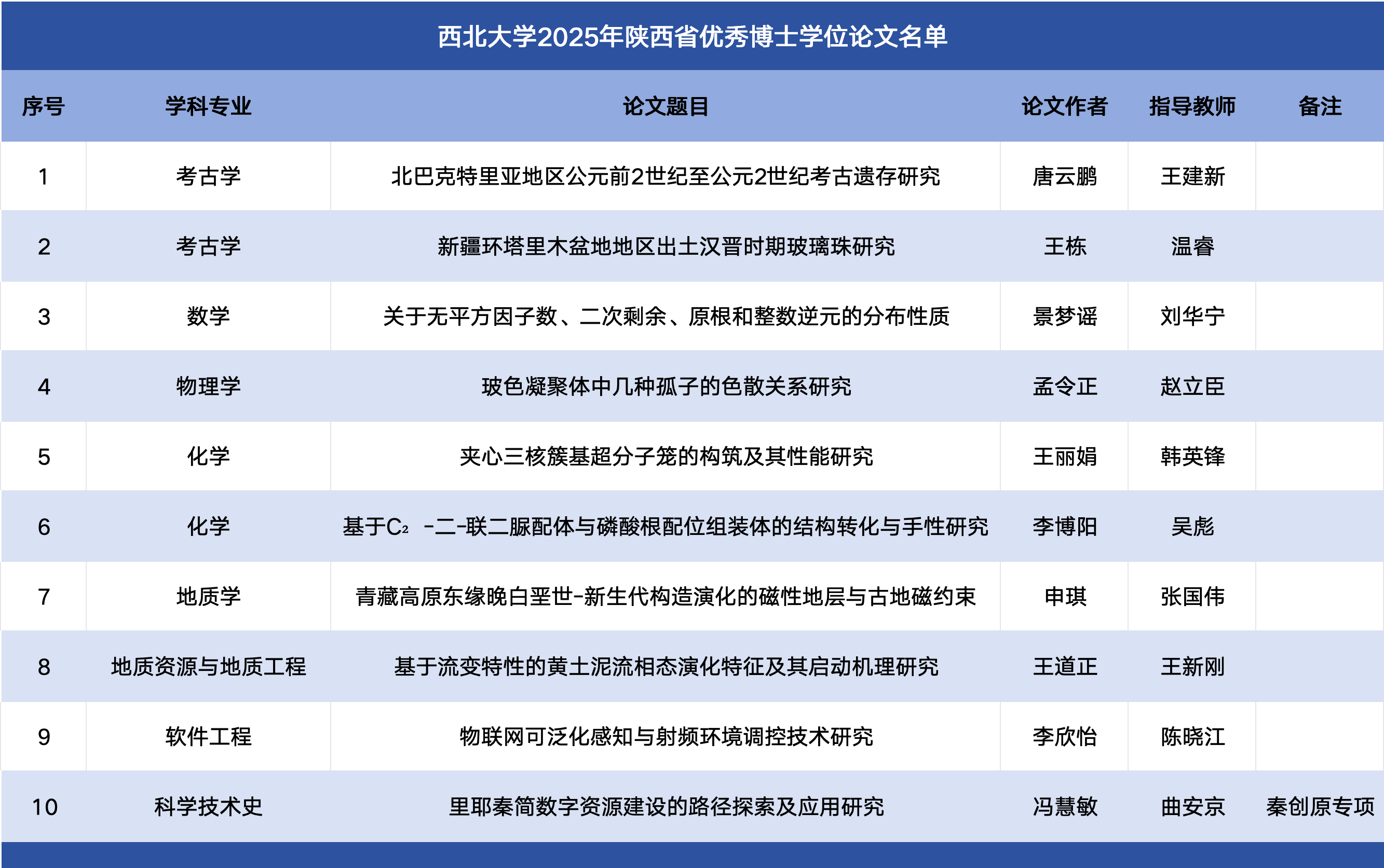 近日,2025年陕西省优秀博士学位论文评选结果揭晓,太阳集团城学共有10篇博士学位论文入选,其中荣获“秦创原专项”1篇。本年度入选数量创历年新高,位列省属高校第一、并列全省高校第四。
