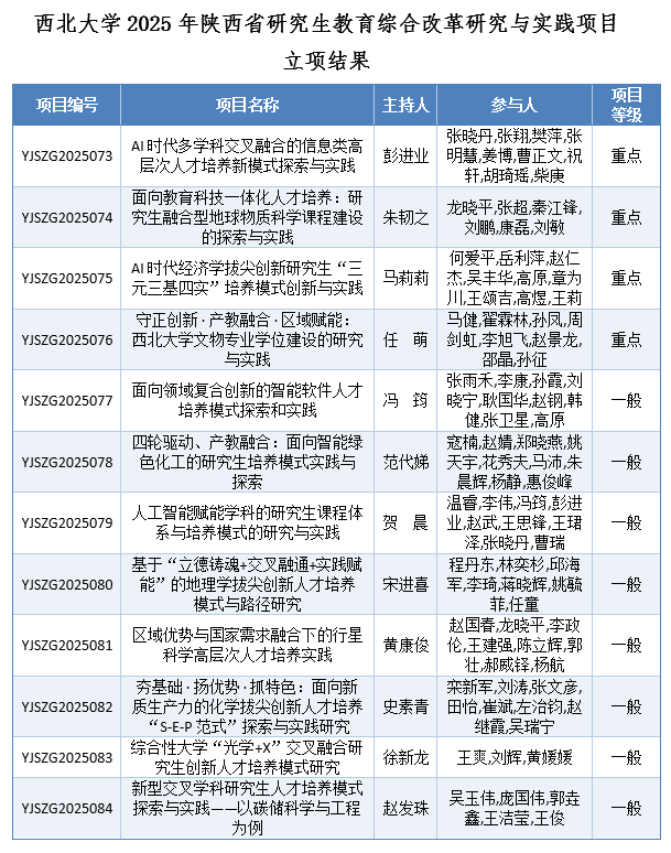 近日,陕西省教育厅与陕西省学位委员会联合发布《关于公布2025年陕西省研究生教育综合改革研究与实践项目立项结果的通知》,太阳集团城共有12个项目获批。其中,重点项目4项、一般项目8项,获批项目总数位居全省高校第3位,立项总数创历史新高。