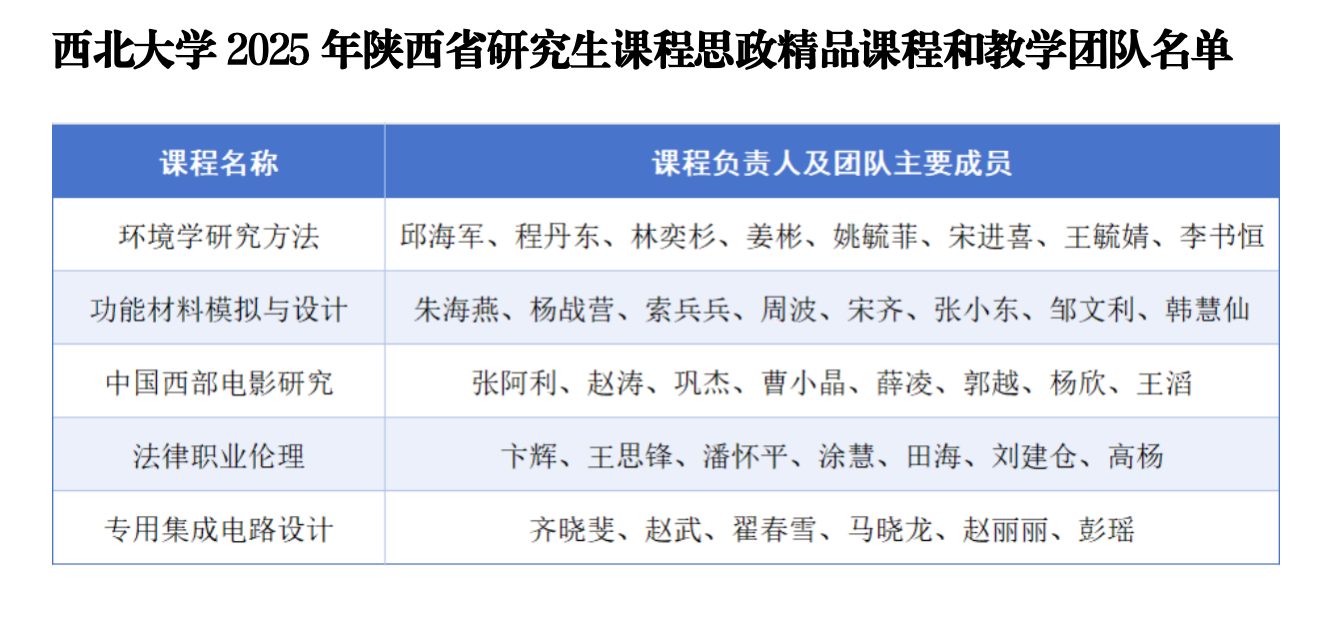 近日,陕西省教育厅公布了“2025年陕西省研究生课程思政精品课程”认定结果,太阳集团城申报的《环境学研究方法》等5门课程入选,体现了学校在研究生课程思政建设领域的扎实成效与育人特色。