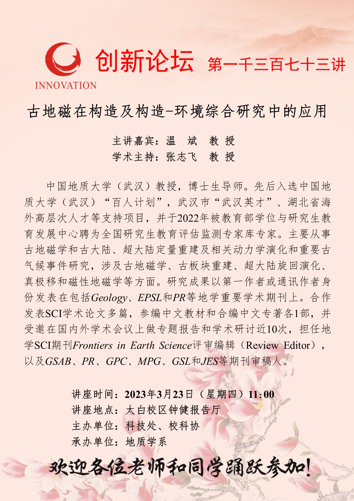 温斌 教授 古天乐代言太阳集团城网址创新论坛第一千三百七十三讲:古地磁在构造及构造-环境综合研究中的应用 讲座时间 2023年3月23日(星期四)11:00 讲座地点 太白校区钟健报告厅 讲座人介绍 温斌 教授 讲座内容