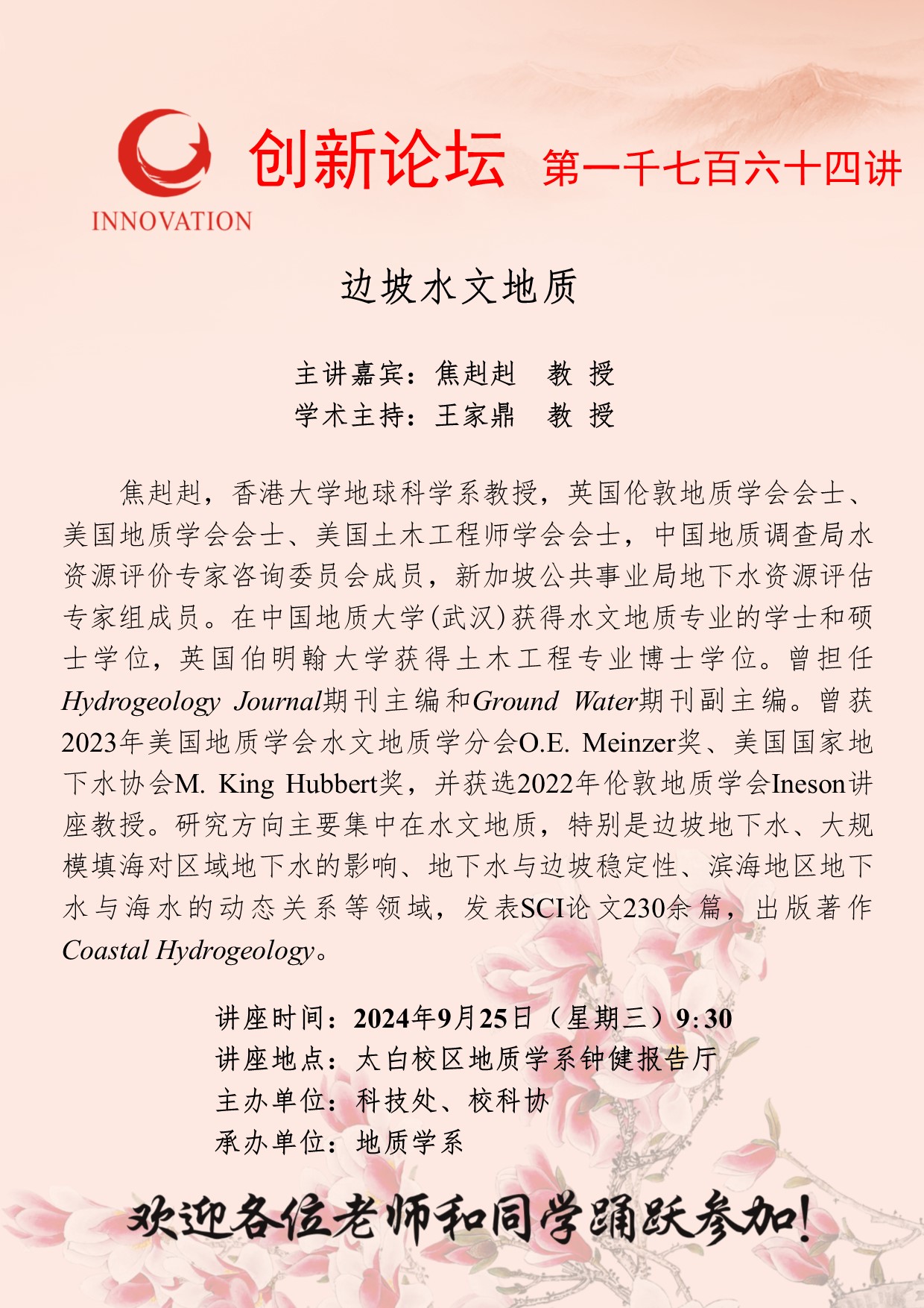 焦赳赳 教授 古天乐代言太阳集团城网址创新论坛第一千七百六十四讲:边坡水文地质 讲座时间 2024年9月25日(星期三)9:30 讲座地点 太白校区地质学系钟健报告厅 讲座人介绍 焦赳赳 教授 讲座内容