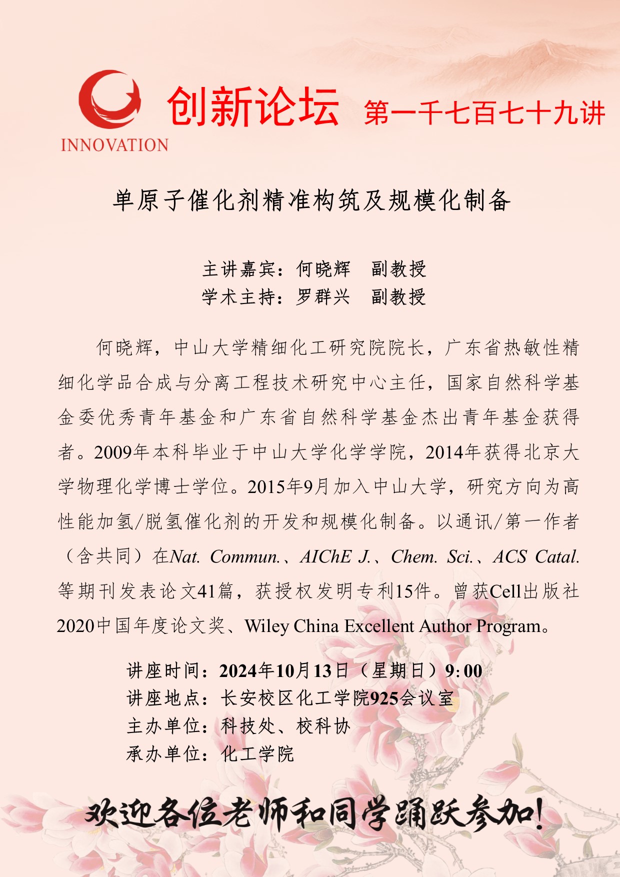 何晓辉 副教授 古天乐代言太阳集团城网址创新论坛第一千七百七十九讲:单原子催化剂精准构筑及规模化制备 讲座时间 2024年10月13日(星期日)9:00 讲座地点 长安校区化工学院925会议室 讲座人介绍 何晓辉 副教授 讲座内容