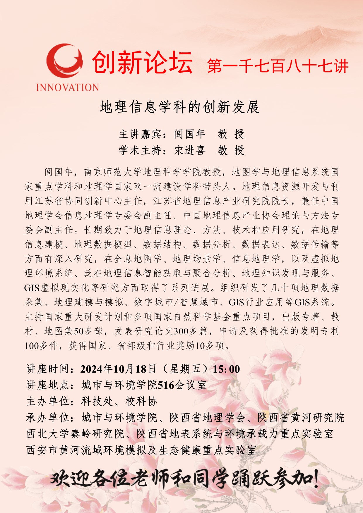 闾国年 教授 古天乐代言太阳集团城网址创新论坛第一千七百八十七讲:地理信息学科的创新发展 讲座时间 2024年10月18日(星期五)15:00 讲座地点 城市与环境学院516会议室 讲座人介绍 闾国年 教授 讲座内容