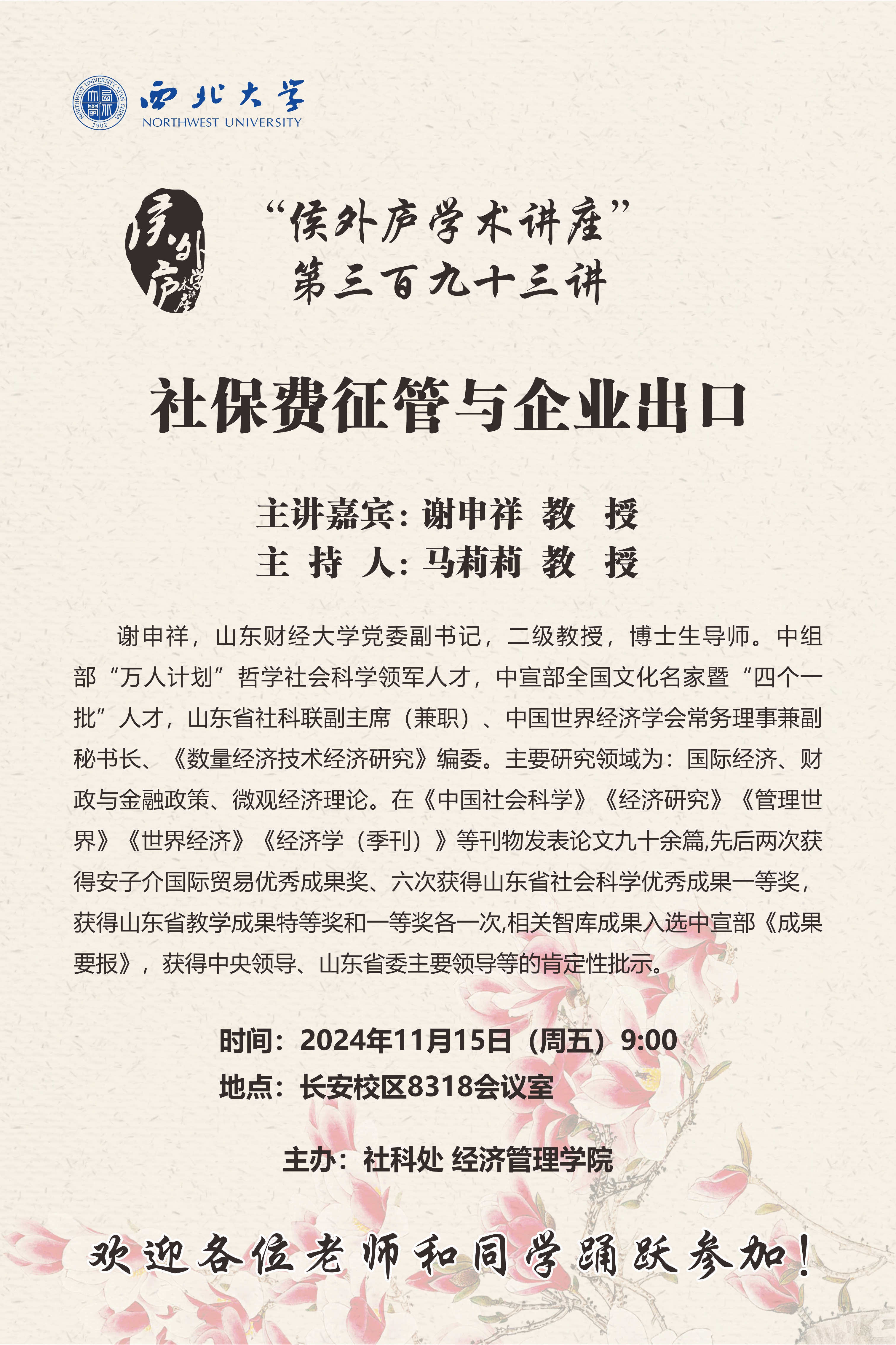 “侯外庐学术讲座”第三百九十三讲:社保费征管与企业出口