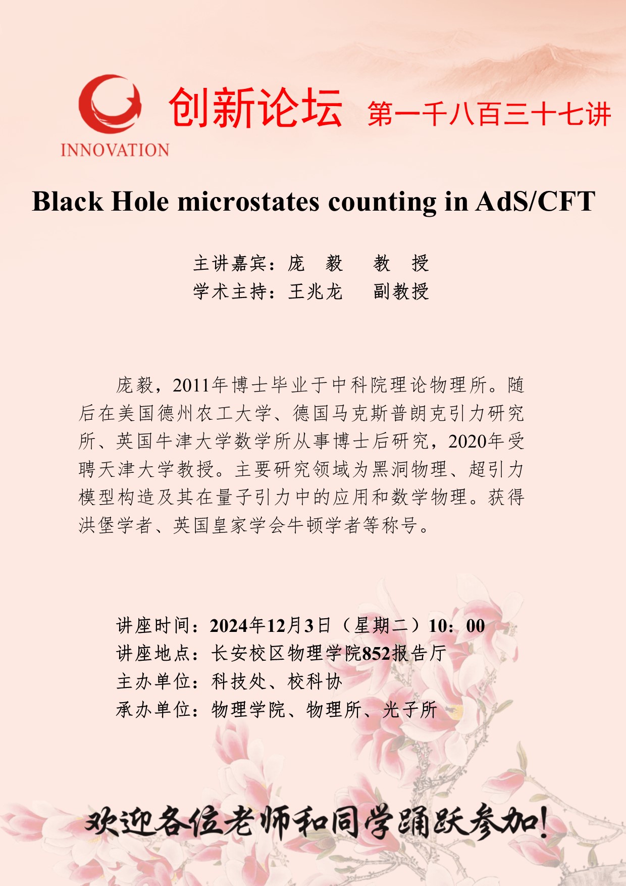 庞毅 教授 古天乐代言太阳集团城网址创新论坛第一千八百三十七讲:Black Hole microstates counting in AdS/CFT 讲座时间 2024年12月3日(星期二)10:00 讲座地点 长安校区物理学院852报告厅 讲座人介绍 庞毅 教授 讲座内容