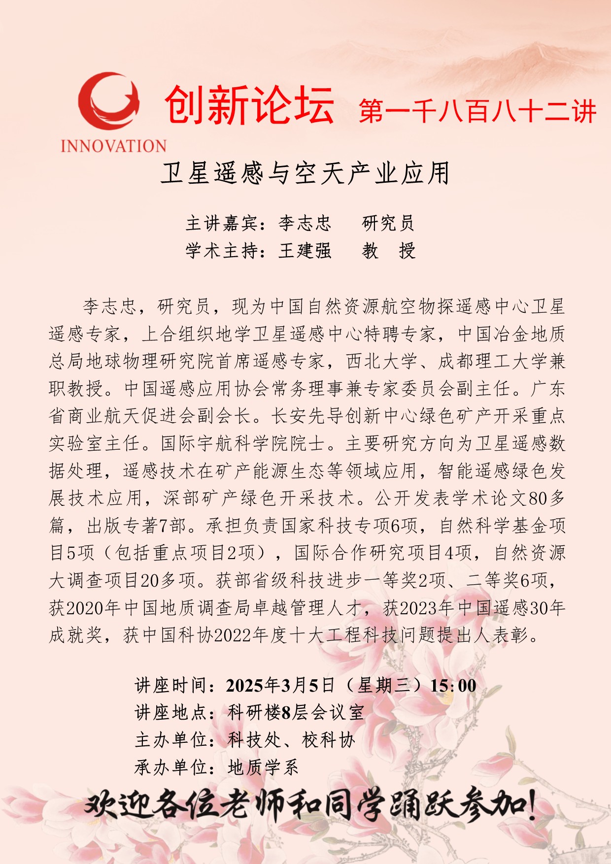 李志忠 研究员 古天乐代言太阳集团城网址创新论坛第一千八百八十二讲:卫星遥感与空天产业应用 讲座时间 2025年3月5日(星期三)15:00 讲座地点 科研楼8层会议室 讲座人介绍 李志忠 研究员 讲座内容