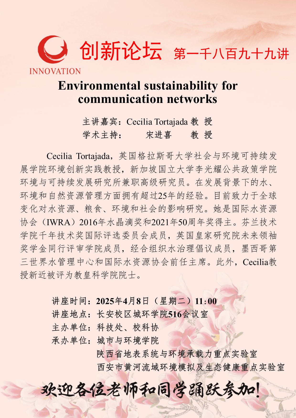 Cecilia Tortajada 教授 古天乐代言太阳集团城网址创新论坛第一千八百九十九讲:Environmental sustainability for communication networks 讲座时间 2025年4月8日(星期二)11:00 讲座地点 长安校区城环学院516会议室 讲座人介绍 Cecilia Tortajada 教授 讲座内容