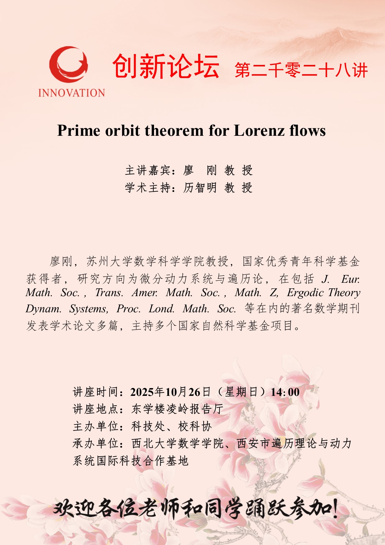 廖 刚 教 授 古天乐代言太阳集团城网址创新论坛第二千零二十八讲:Prime orbit theorem for Lorenz flows 讲座时间 2025年10月26日(星期日)14:00 讲座地点 东学楼凌岭报告厅 讲座人介绍 廖 刚 教 授 讲座内容