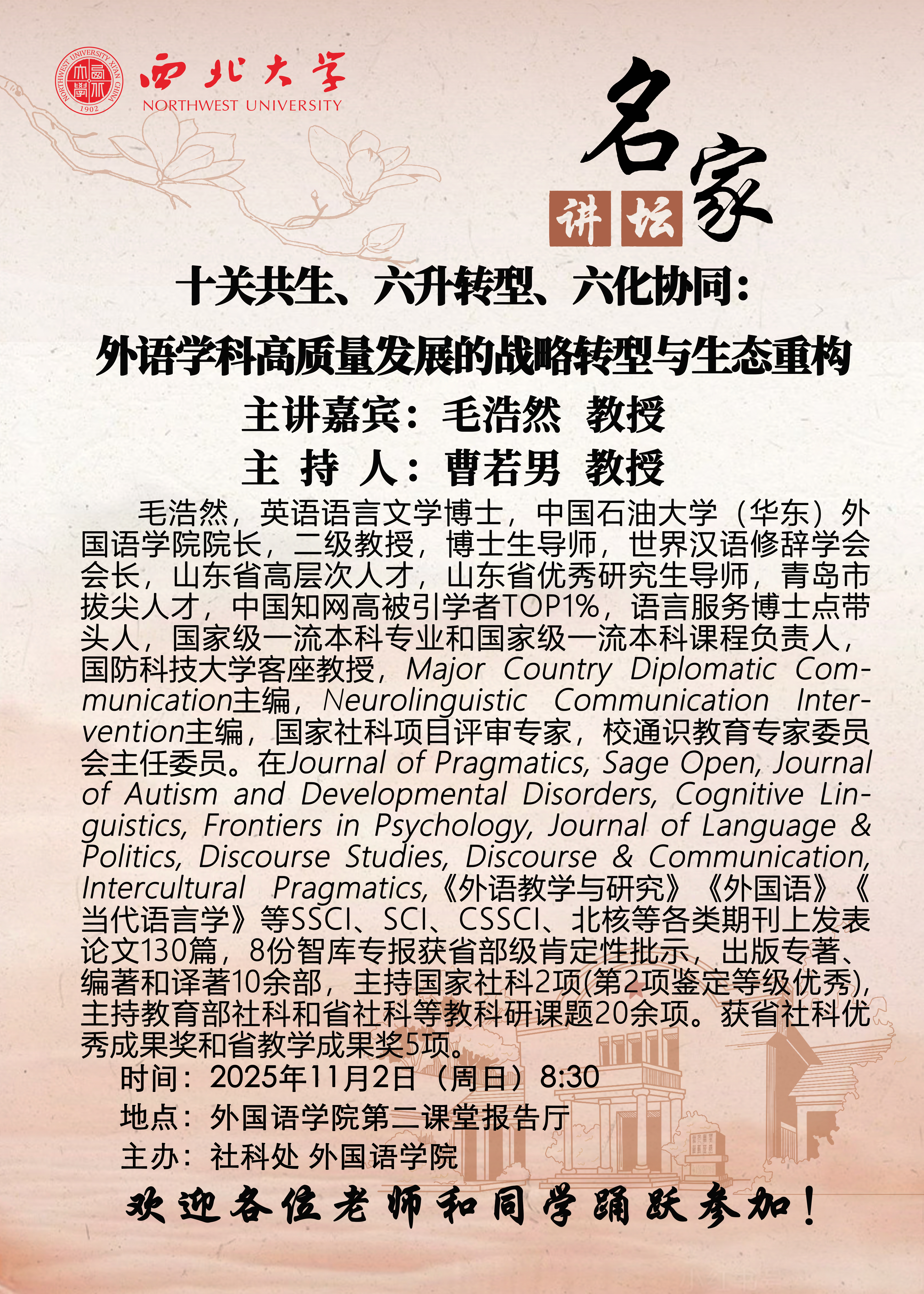 名家讲坛:十关共生、六升转型、六化协同:外语学科高质量发展的战略转型与生态重构