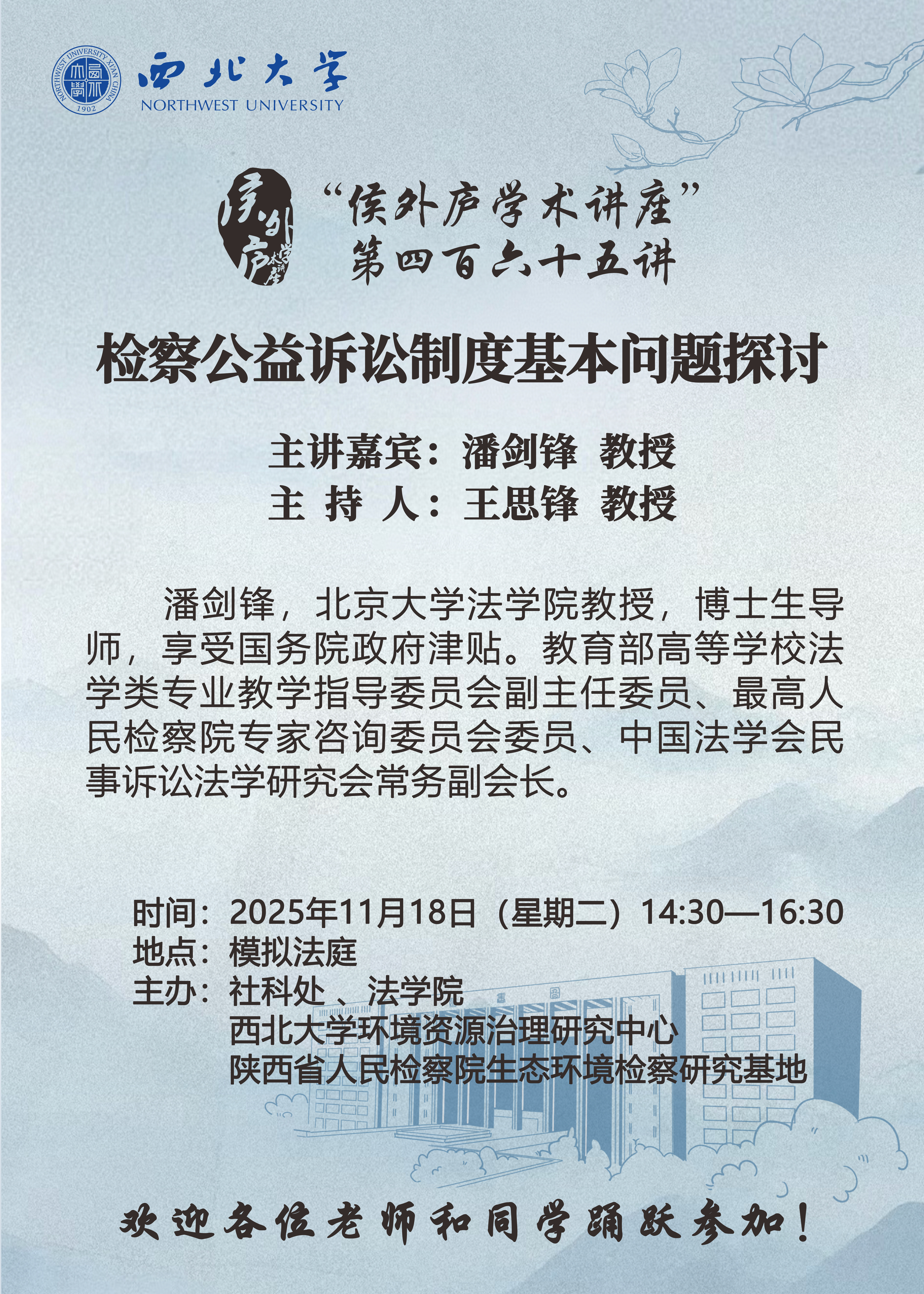 “侯外庐学术讲座”第四百六十五讲:检察公益诉讼制度基本问题探讨
