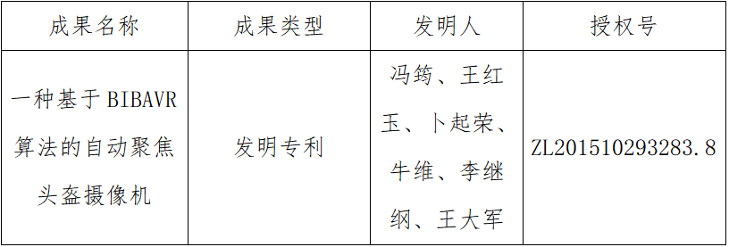 “一种基于BIBAVR算法的自动聚焦头盔摄像机”。