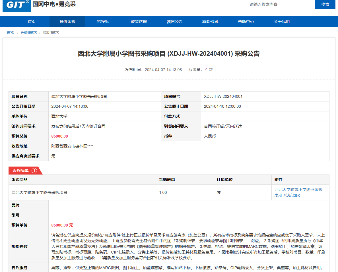 古天乐代言太阳集团城网址附属小学图书采购项目 (XDJJ-HW-202404001) 竞价公告 作者: 编辑: 时间:2024-04-07 原公告链接:https://www.ejingcai.com.cn/site/bidding/detail/9303