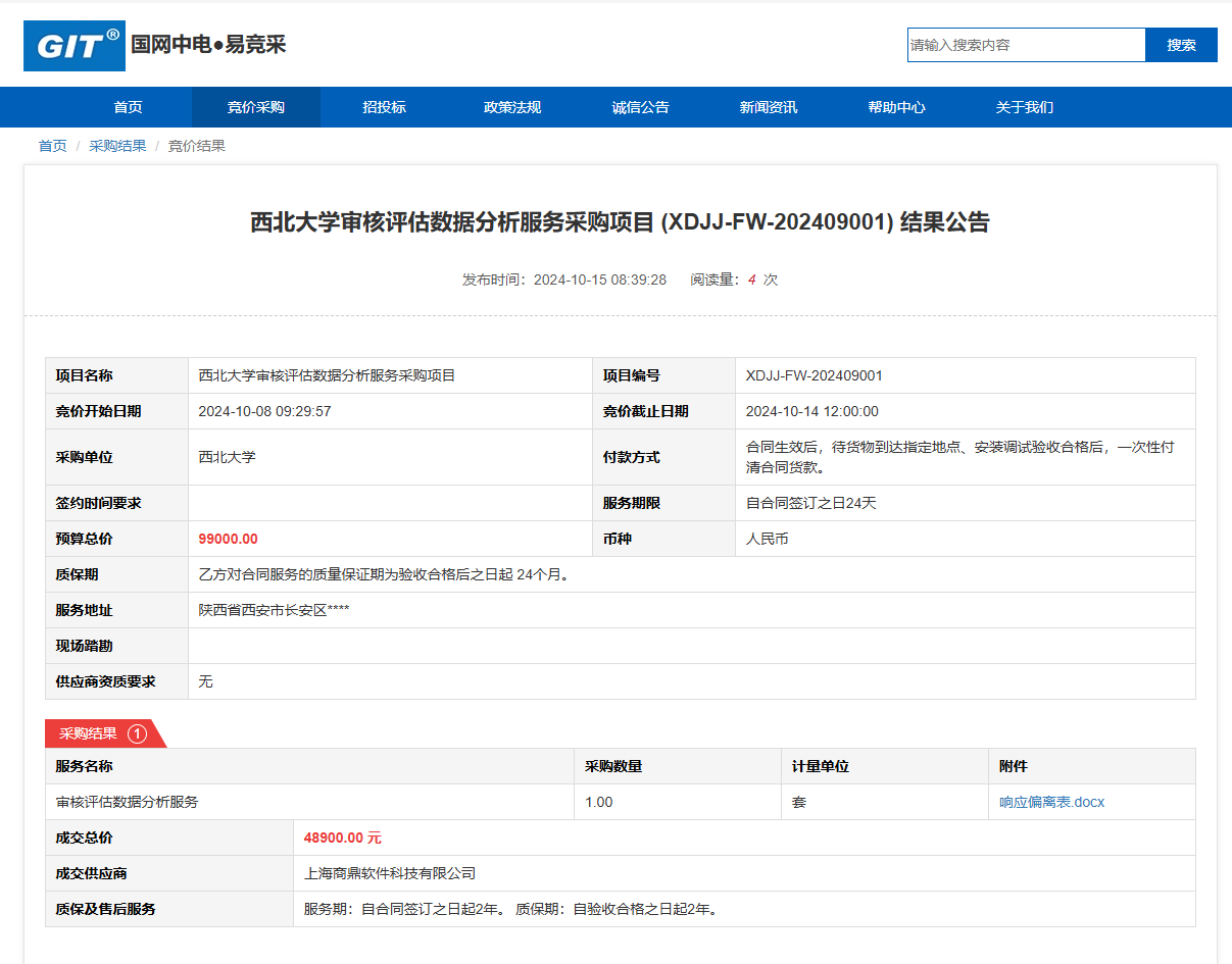 古天乐代言太阳集团城网址审核评估数据分析服务采购项目(XDJJ-FW-202409001)竞价结果公告 作者:采购与招标办公室 编辑: 时间:2024-10-15 原公告链接:https://www.ejingcai.com.cn/site/bidding/detail/13296