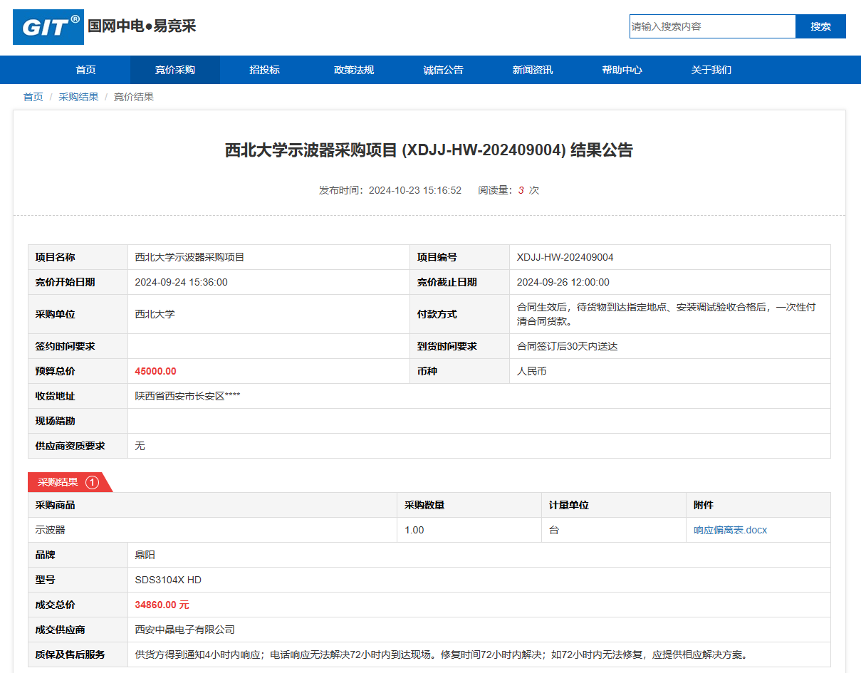 古天乐代言太阳集团城网址示波器采购项目(XDJJ-HW-202409004)竞价结果公告 作者:采购与招标办公室 编辑: 时间:2024-10-23 原公告链接:https://www.ejingcai.com.cn/site/bidding/detail/13693