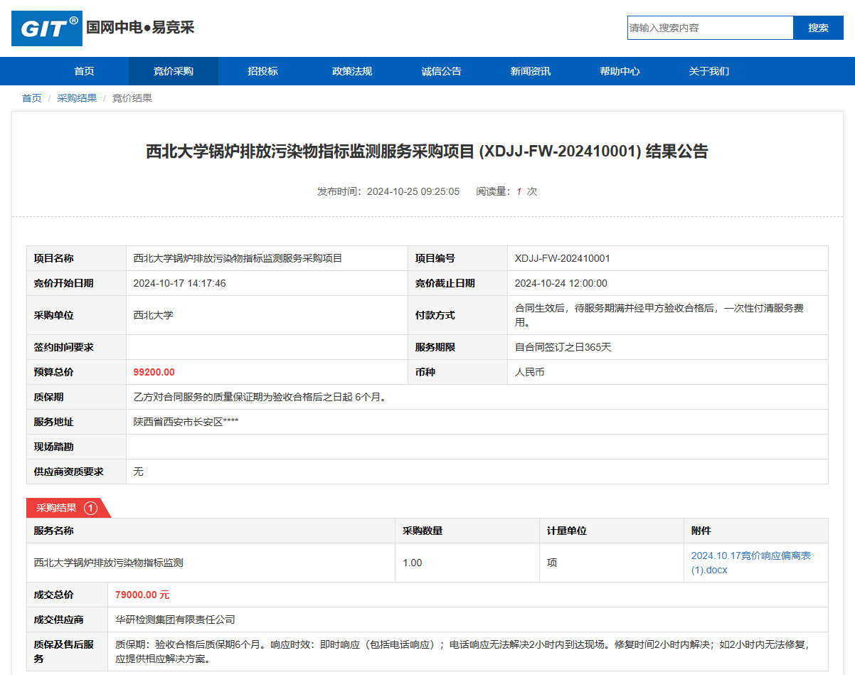 古天乐代言太阳集团城网址锅炉排放污染物指标监测服务采购项目(XDJJ-FW-202410001)竞价结果公告 作者:采购与招标办公室 编辑: 时间:2024-10-25 原公告链接:https://www.ejingcai.com.cn/site/bidding/detail/13778