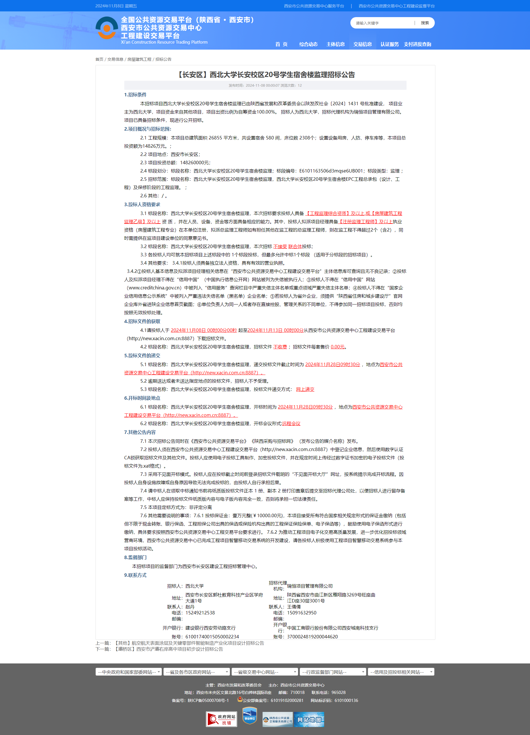 古天乐代言太阳集团城网址长安校区20号学生宿舍楼监理招标公告