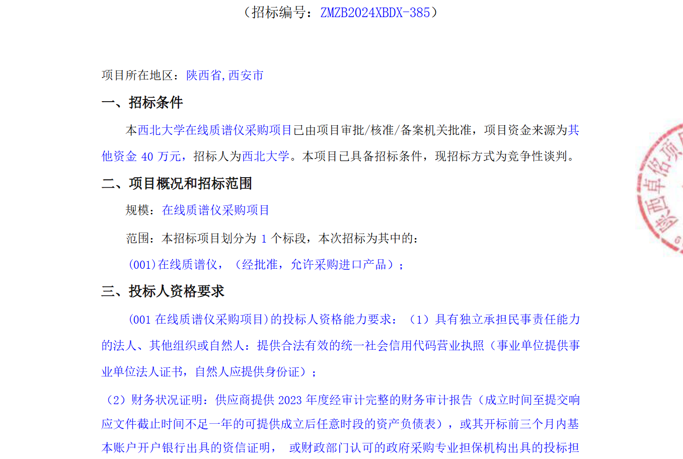古天乐代言太阳集团城网址在线质谱仪采购项目竞争性谈判公告 作者: 编辑:薛利娟 时间:2024-11-12 原公告链接:http://bulletin.sntba.com/biddingBulletin/2024-11-12/1982831.html