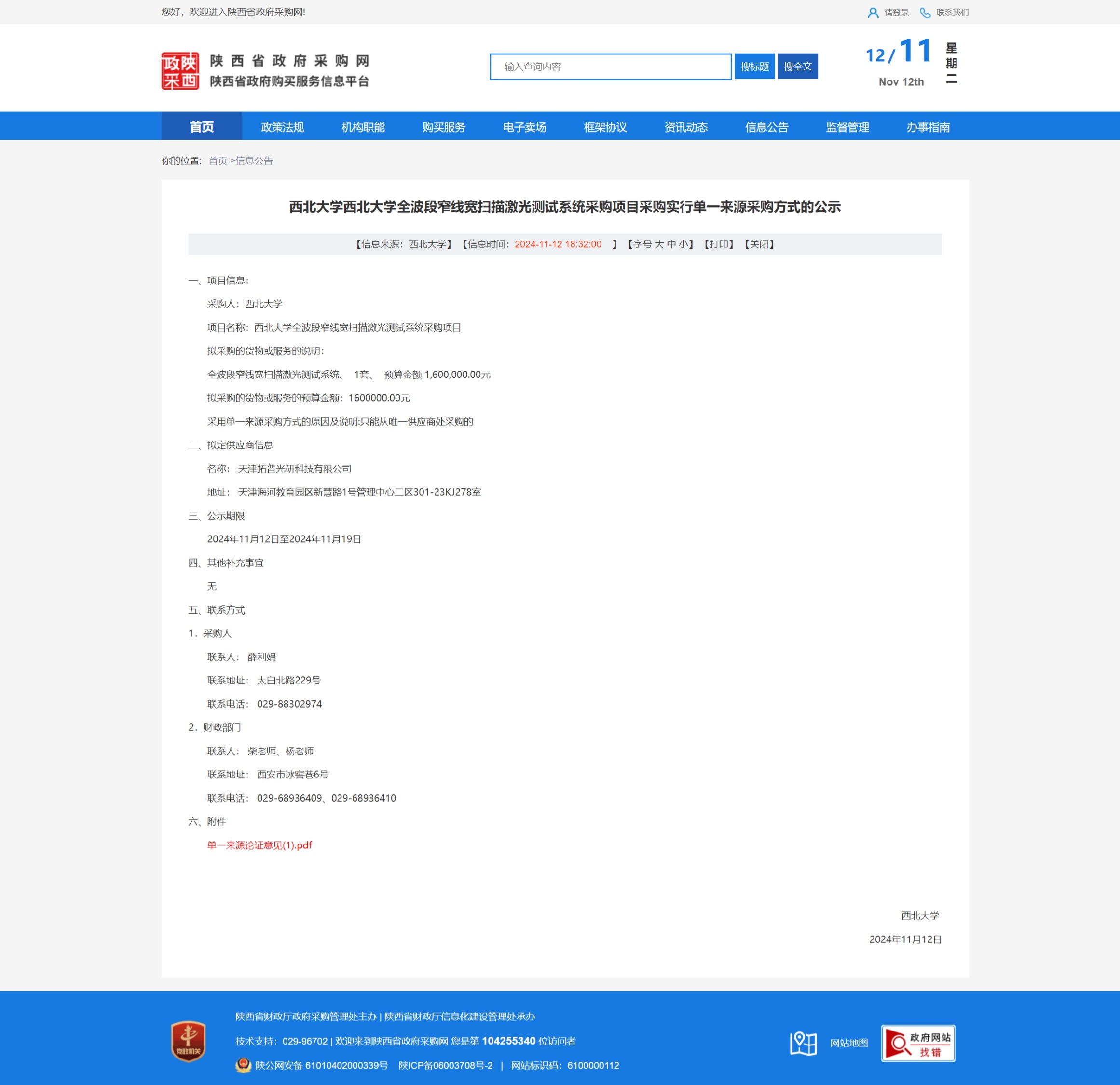 古天乐代言太阳集团城网址全波段窄线宽扫描激光测试系统采购项目采购实行单一来源采购方式的公示 作者: 编辑:薛利娟 时间:2024-11-12 原公告链接:https://www.ccgp-shaanxi.gov.cn/freecms/site/shaanxi/ggxx/info/2024/8a69c24d91d6105a01931fd0fd6f6828.html?noticeType=001051¬iceId=e9c41b14-a0e2-11ef-8063-08c0eb20c666