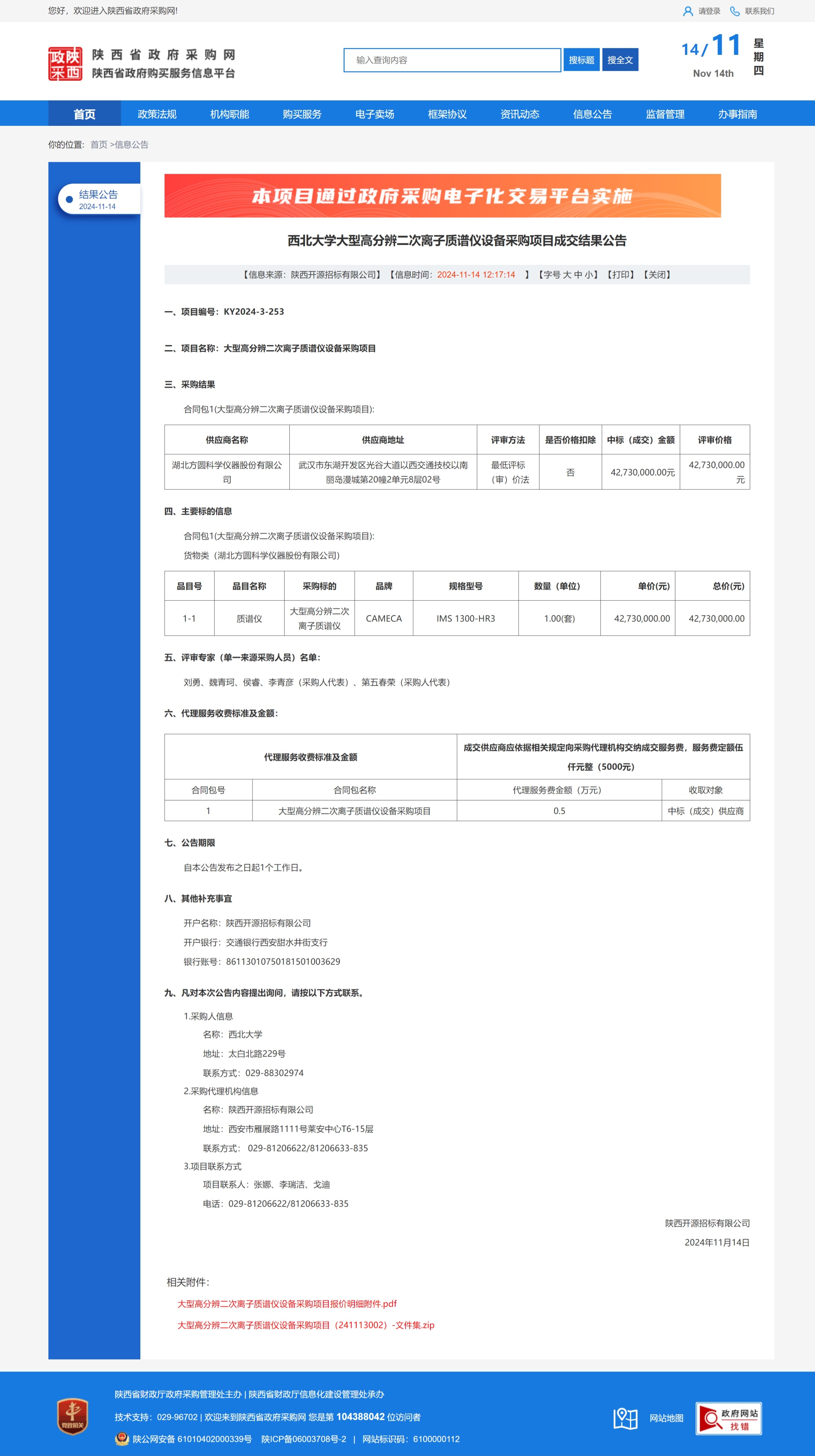 古天乐代言太阳集团城网址大型高分辨二次离子质谱仪设备采购项目成交结果公告 作者: 编辑:薛利娟 时间:2024-11-14 原公告链接:https://www.ccgp-shaanxi.gov.cn/freecms/site/shaanxi/ggxx/info/2024/8a69c5a59218576d019328dcd1526537.html?noticeType=001025¬iceId=e4e285ed-a240-11ef-8063-08c0eb20c666