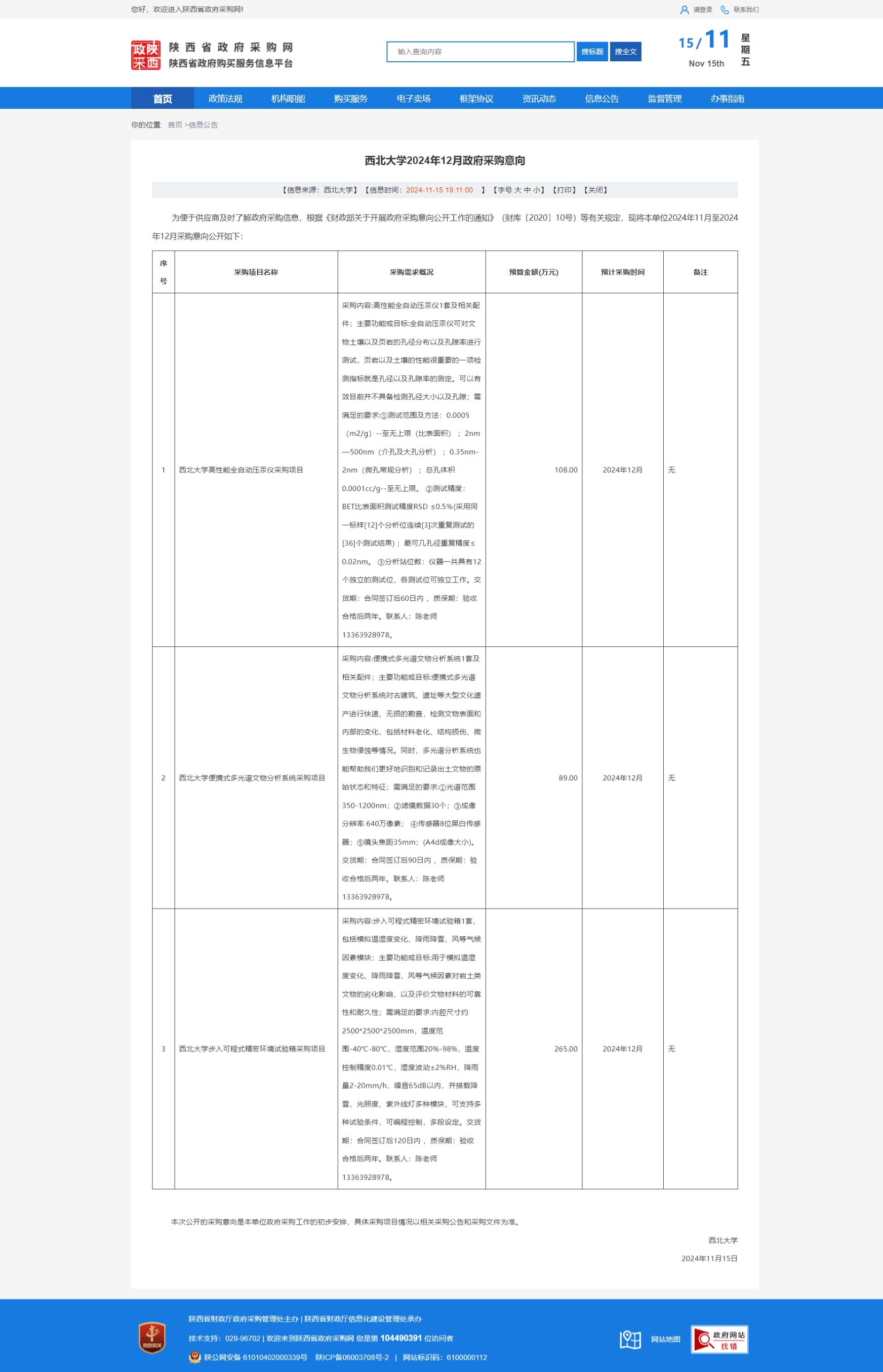 古天乐代言太阳集团城网址2024年12月政府采购意向(丝绸之路文化遗产保护实验平台2) 作者: 编辑:薛利娟 时间:2024-11-15 原公告链接:https://www.ccgp-shaanxi.gov.cn/freecms/site/shaanxi/ggxx/info/2024/8a69c037932429a301932f7f7f544a1e.html?noticeType=59¬iceId=dd1c3365-a343-11ef-8063-08c0eb20c666