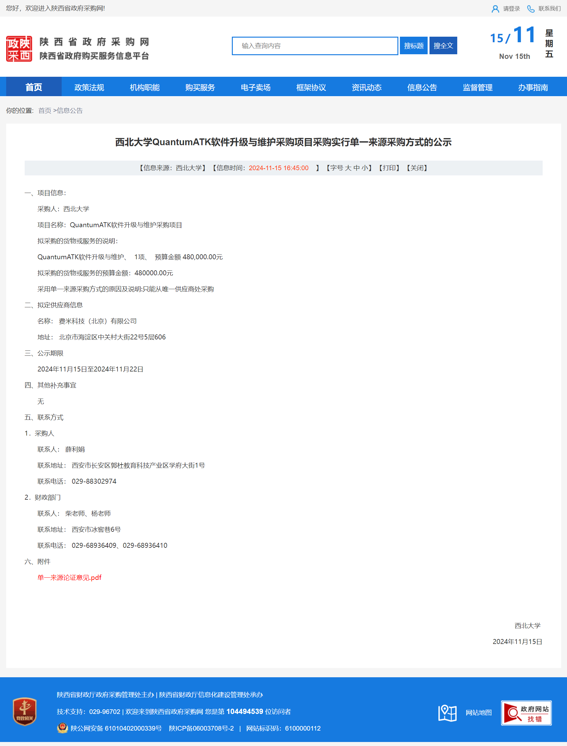 古天乐代言太阳集团城网址QuantumATK软件升级与维护采购项目采购实行单一来源采购方式的公示