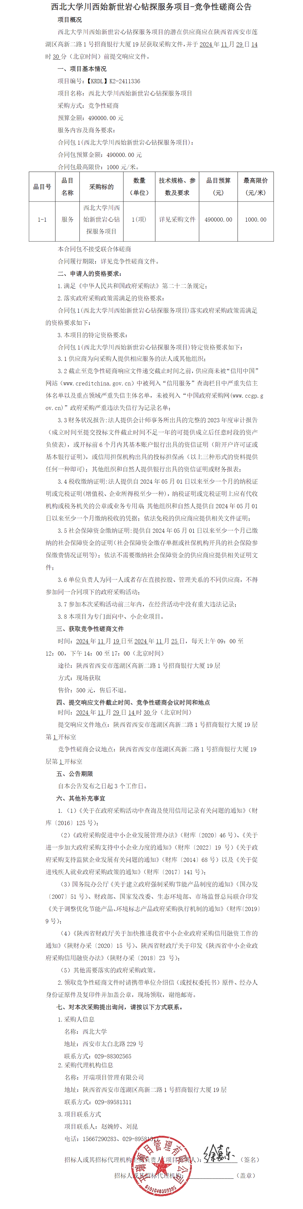 古天乐代言太阳集团城网址西安市古生物信息学重点实验室岩芯钻取服务项目竞争性磋商公告