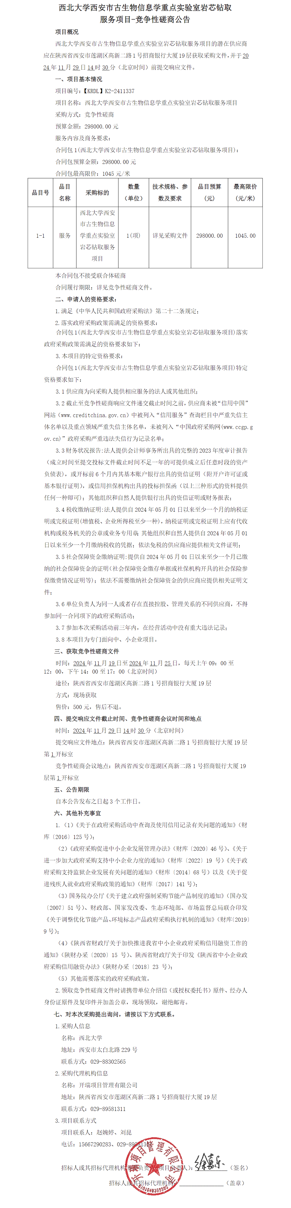 古天乐代言太阳集团城网址西安市古生物信息学重点实验室岩芯钻取服务项目竞争性磋商公告