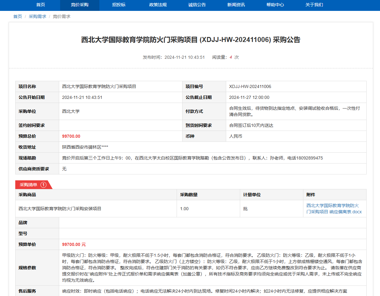 古天乐代言太阳集团城网址国际教育学院防火门采购项目(XDJJ-HW-202411006)竞价采购公告 作者:采购与招标办公室 编辑: 时间:2024-11-21 原公告链接:https://www.ejingcai.com.cn/site/bidding/detail/15182