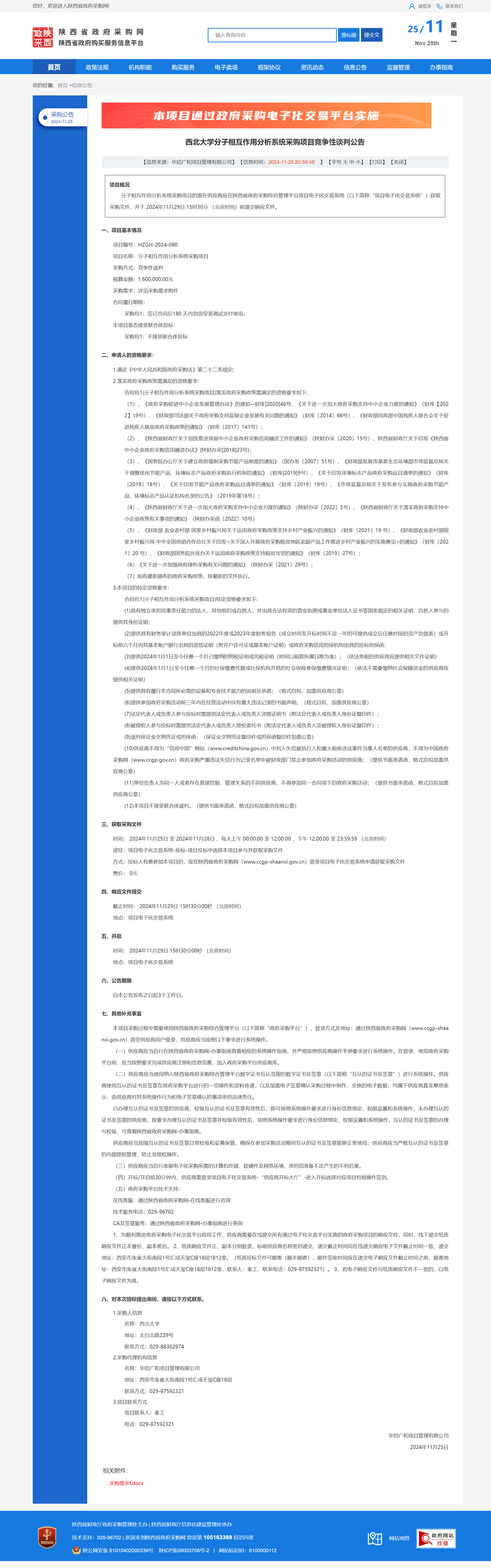 古天乐代言太阳集团城网址分子相互作用分析系统采购项目竞争性谈判公告