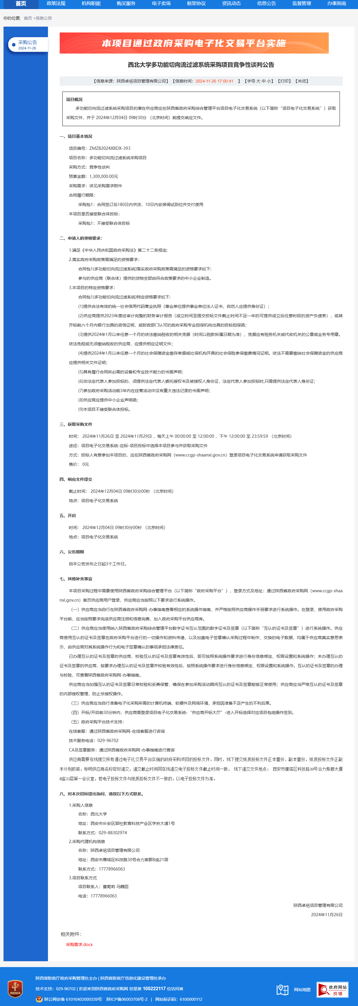 古天乐代言太阳集团城网址多功能切向流过滤系统采购项目竞争性谈判公告 作者:采购与招标办公室 编辑: 时间:2024-11-26 原公告链接:https://www.ccgp-shaanxi.gov.cn/freecms/site/shaanxi/ggxx/info/2024/8a69c44e9218572b0193677ca4876f80.html?noticeType=001013¬iceId=80bc7ae0-abd6-11ef-8063-08c0eb20c666
