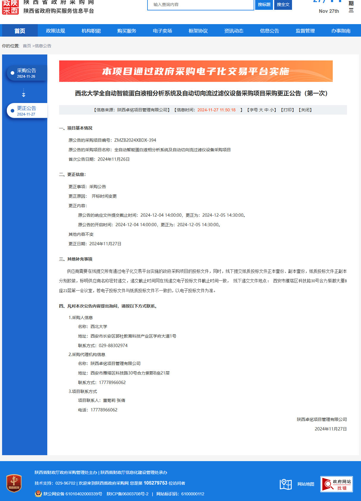 古天乐代言太阳集团城网址全自动智能蛋白液相分析系统及自动切向流过滤仪设备采购项目采购更正公告 作者:采购与招标办公室 编辑: 时间:2024-11-27 原公告链接:https://www.ccgp-shaanxi.gov.cn/freecms/site/shaanxi/ggxx/info/2024/8a69c44e9218572b01936bbab7481f2c.html?noticeType=001031¬iceId=4f3bb739-ac74-11ef-8063-08c0eb20c666