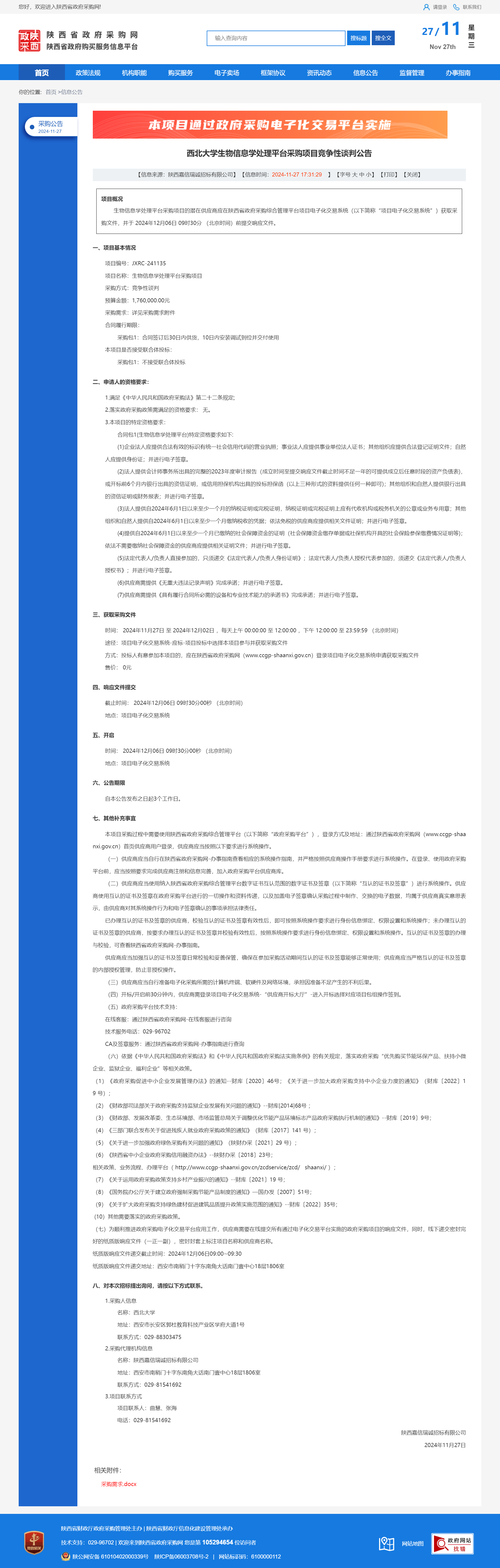 古天乐代言太阳集团城网址生物信息学处理平台采购项目竞争性谈判公告 作者:采购与招标办公室 编辑: 时间:2024-11-27 原公告链接:https://www.ccgp-shaanxi.gov.cn/freecms/site/shaanxi/ggxx/info/2024/8a69c2519218573701936ce159174448.html?noticeType=001013¬iceId=f93e2324-aca3-11ef-8063-08c0eb20c666