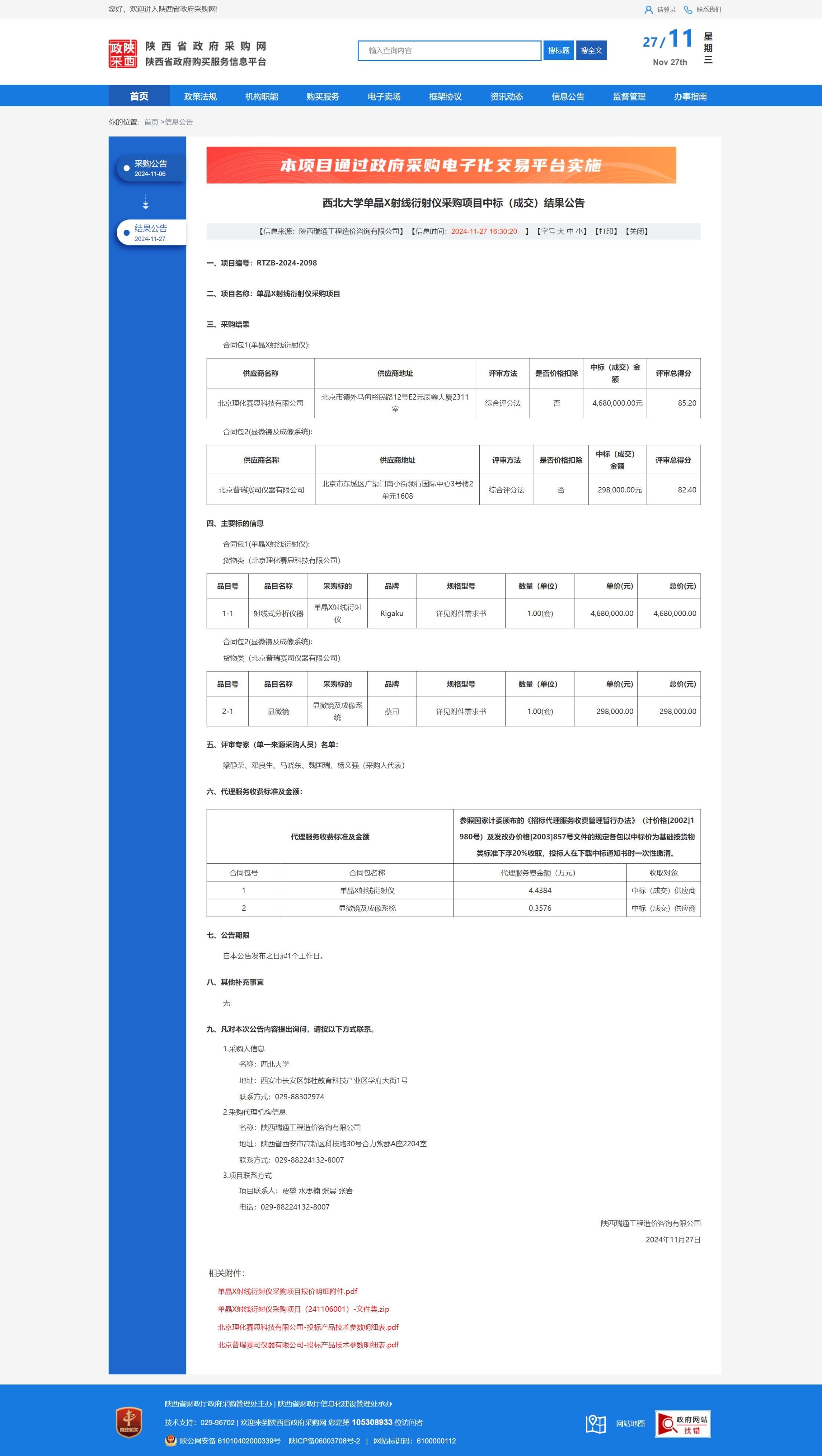 古天乐代言太阳集团城网址单晶X射线衍射仪采购项目中标(成交)结果公告 作者: 编辑:薛利娟 时间:2024-11-27 原公告链接:https://www.ccgp-shaanxi.gov.cn/freecms/site/shaanxi/ggxx/info/2024/8a69c2519218573701936c9dc8b83cb3.html?noticeType=001021¬iceId=6e7a9363-ac9b-11ef-8063-08c0eb20c666
