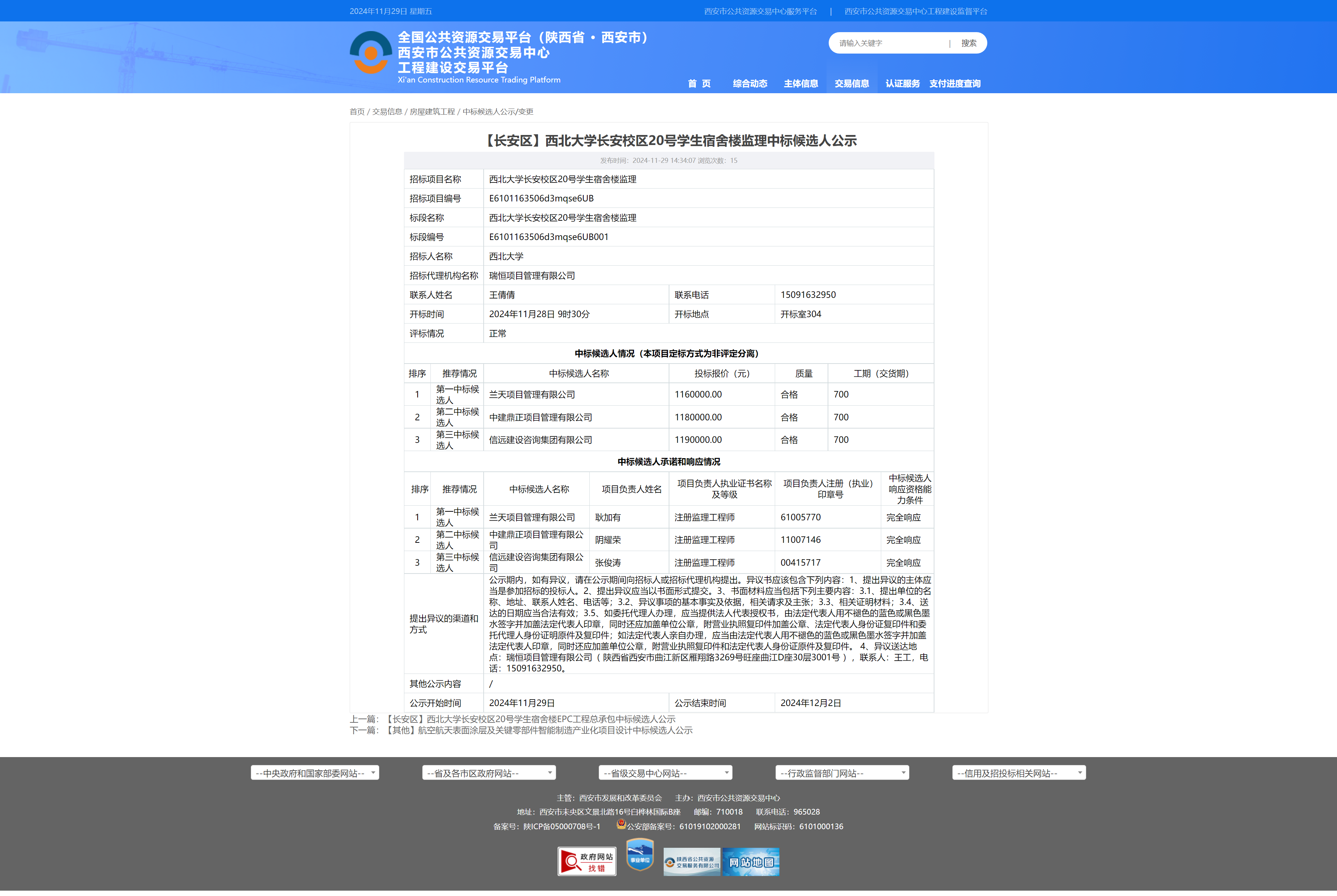 古天乐代言太阳集团城网址长安校区20号学生宿舍楼监理中标候选人公示