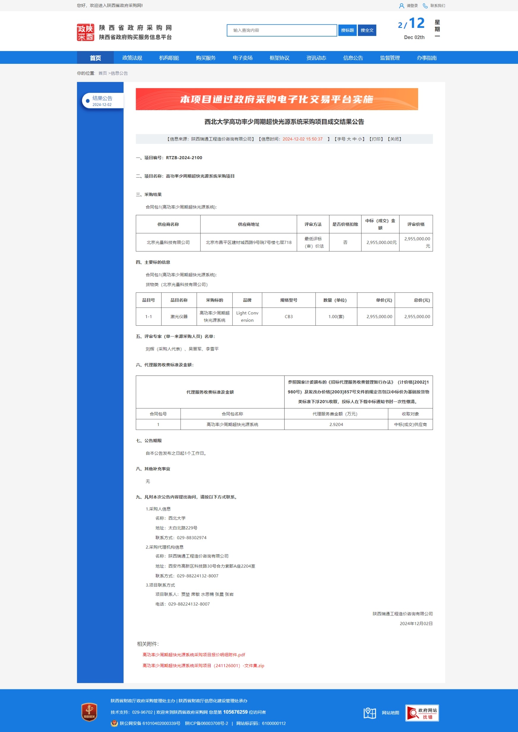 古天乐代言太阳集团城网址高功率少周期超快光源系统采购项目成交结果公告 作者: 编辑:薛利娟 时间:2024-12-02 原公告链接:https://www.ccgp-shaanxi.gov.cn/freecms/site/shaanxi/ggxx/info/2024/8a69c2519218573701938649d42c03eb.html?noticeType=001025¬iceId=b85354c1-b083-11ef-8063-08c0eb20c666