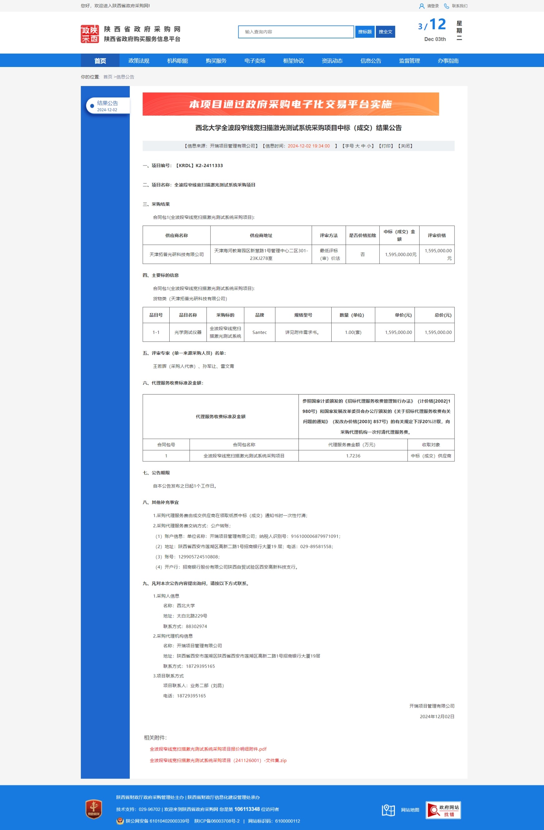 古天乐代言太阳集团城网址全波段窄线宽扫描激光测试系统采购项目中标(成交)结果公告 作者: 编辑:薛利娟 时间:2024-12-03 原公告链接:https://www.ccgp-shaanxi.gov.cn/freecms/site/shaanxi/ggxx/info/2024/8a69c25192185737019387129cff6e5b.html?noticeType=001025¬iceId=ed669128-b0a2-11ef-8063-08c0eb20c666