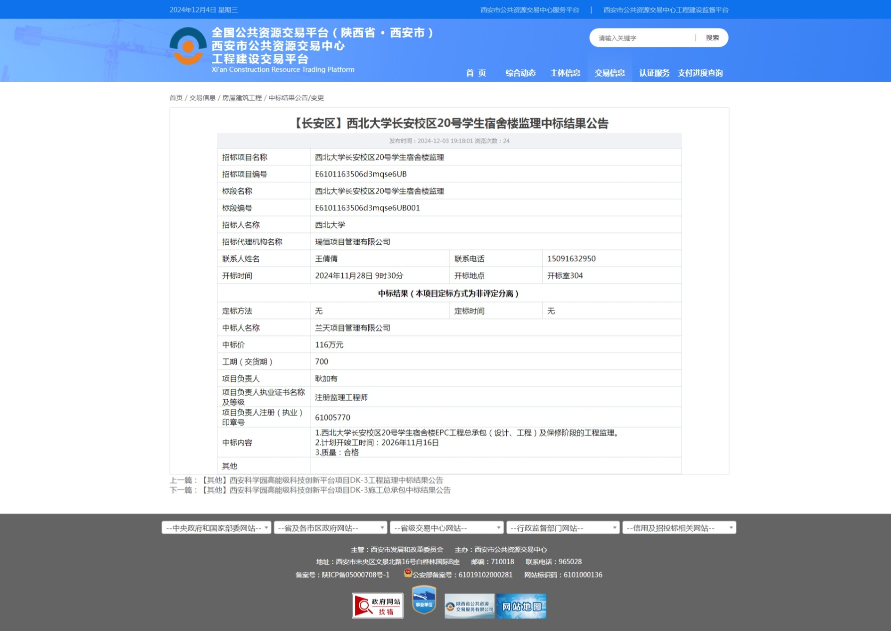 古天乐代言太阳集团城网址长安校区20号学生宿舍楼监理中标结果公告
