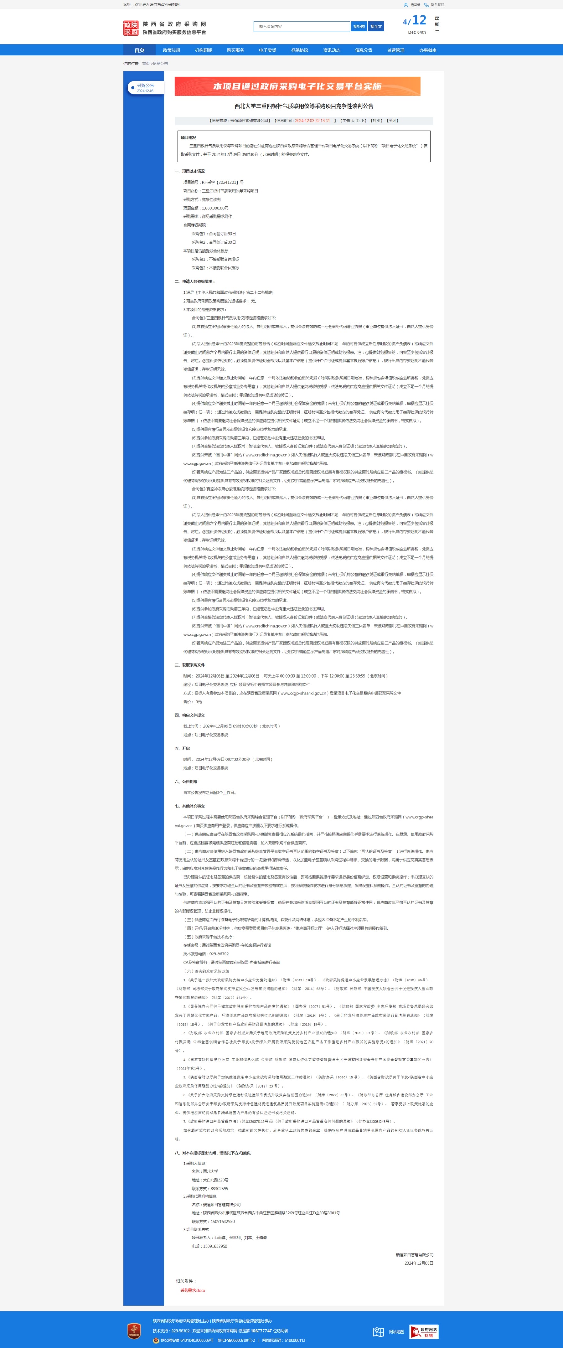 古天乐代言太阳集团城网址三重四极杆气质联用仪等采购项目竞争性谈判公告