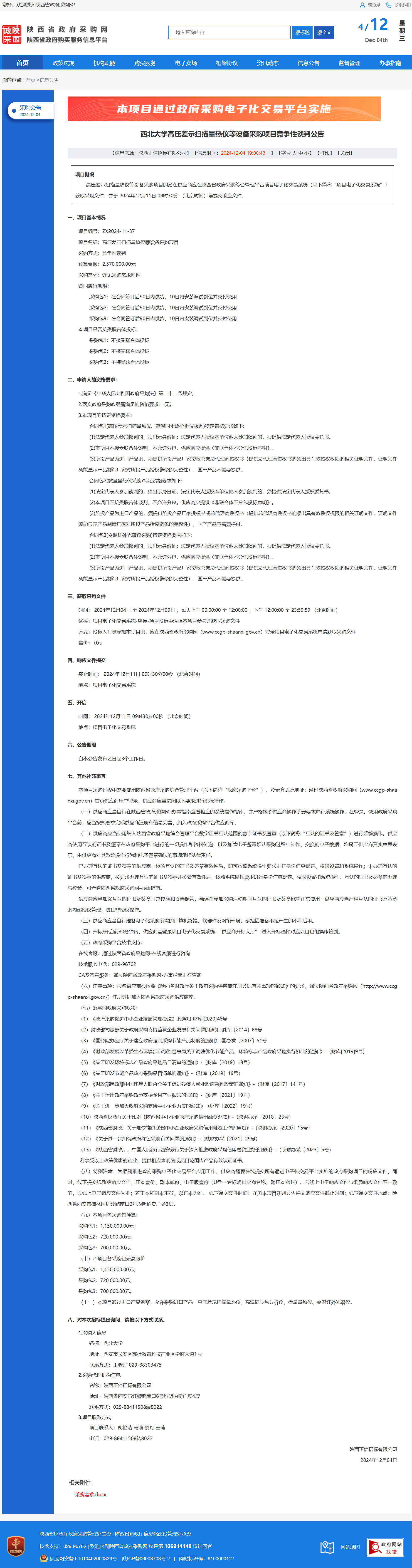 古天乐代言太阳集团城网址高压差示扫描量热仪等设备采购项目竞争性谈判公告 作者:采购与招标办公室 编辑: 时间:2024-12-04 原公告链接:https://www.ccgp-shaanxi.gov.cn/freecms/site/shaanxi/ggxx/info/2024/8a69c5a59218576d0193913c35b35476.html?noticeType=001013¬iceId=9d4d6b86-b230-11ef-8063-08c0eb20c666