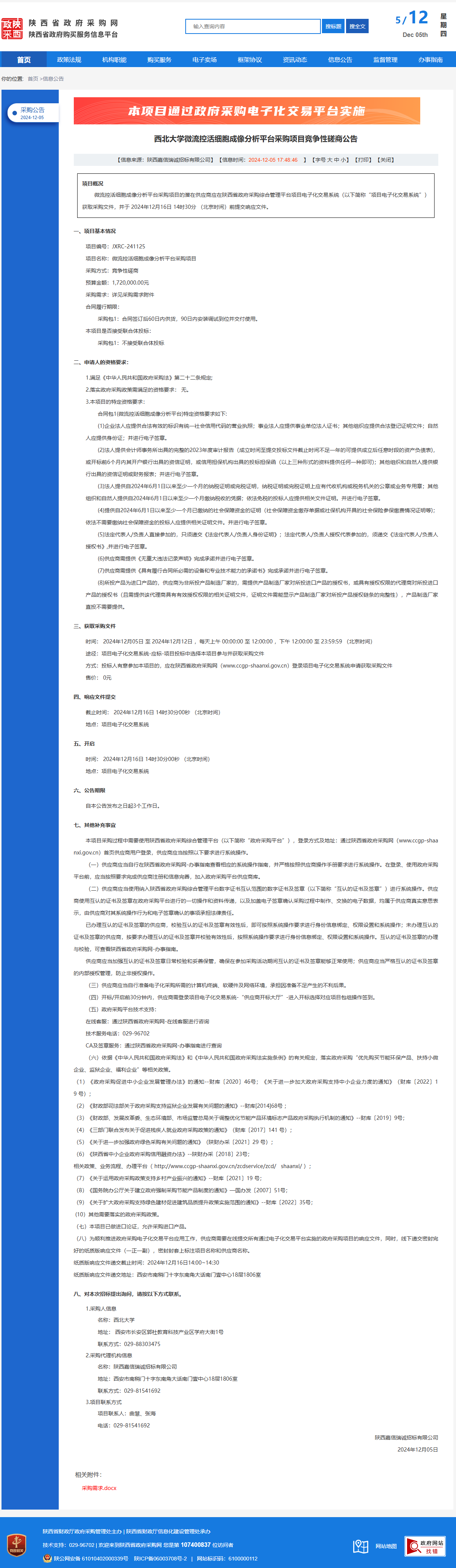 古天乐代言太阳集团城网址微流控活细胞成像分析平台采购项目竞争性磋商公告 作者:采购与招标办公室 编辑: 时间:2024-12-05 原公告链接:https://www.ccgp-shaanxi.gov.cn/freecms/site/shaanxi/ggxx/info/2024/8a69c5a59218576d0193962b8b5f7d27.html?noticeType=001016¬iceId=ba5283be-b2ef-11ef-8063-08c0eb20c666