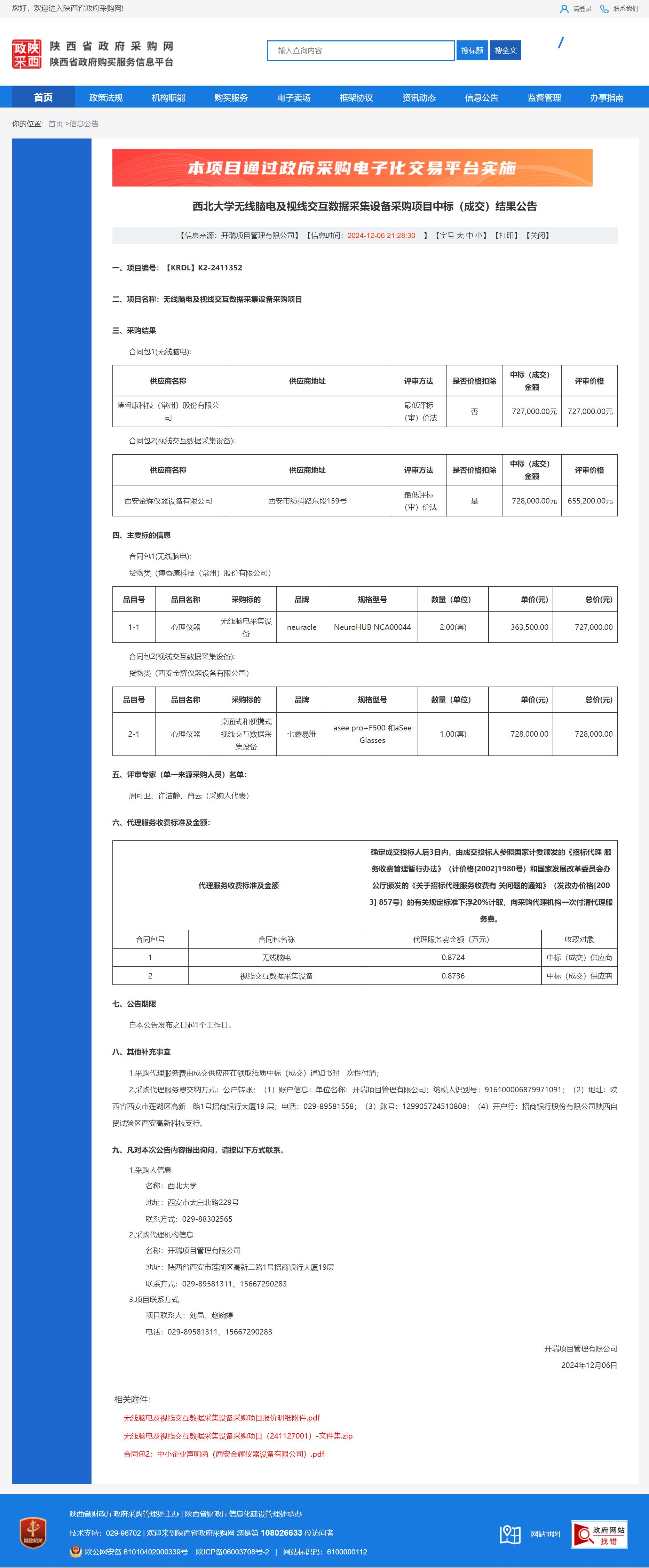 古天乐代言太阳集团城网址无线脑电及视线交互数据采集设备采购项目中标(成交)结果公告