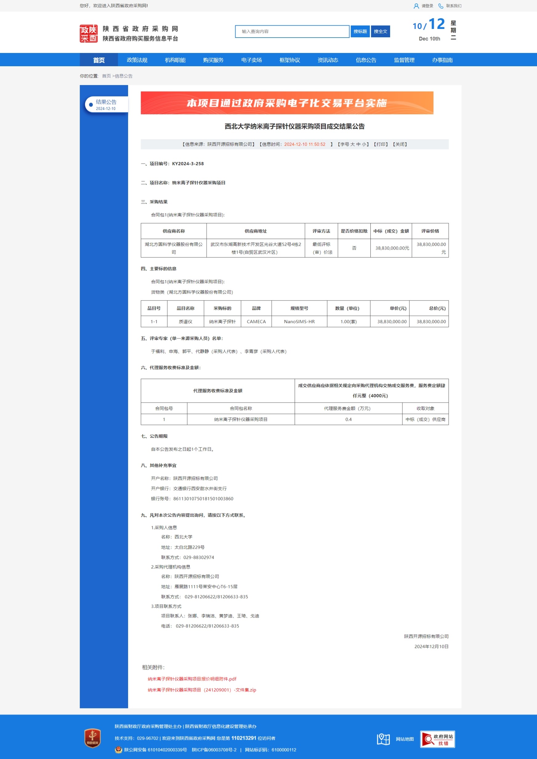 古天乐代言太阳集团城网址纳米离子探针仪器采购项目成交结果公告 作者: 编辑:薛利娟 时间:2024-12-10 原公告链接:https://www.ccgp-shaanxi.gov.cn/freecms/site/shaanxi/ggxx/info/2024/8a69c5a59218576d0193aea3717402eb.html?noticeType=001025¬iceId=917c05e9-b6ab-11ef-8063-08c0eb20c666