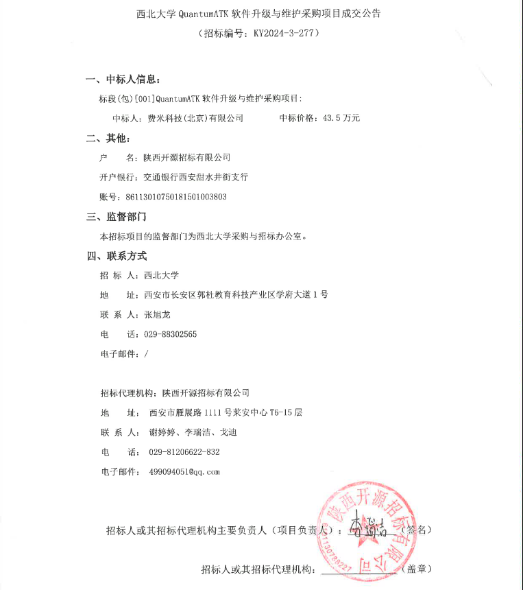 古天乐代言太阳集团城网址QuantumATK软件升级与维护采购项目成交公告